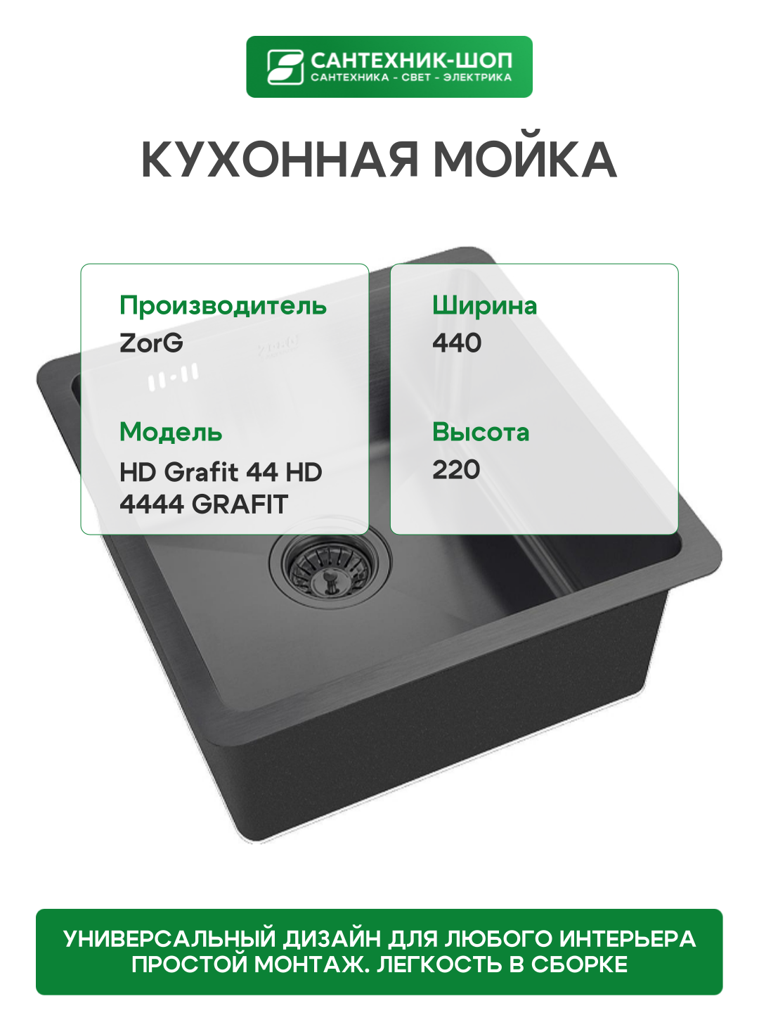 Кухонная мойка ZorG HD Grafit 44 HD 4444 GRAFIT цвет Графит: сравнение цен, характеристики, фото, актуальное наличие и цены.