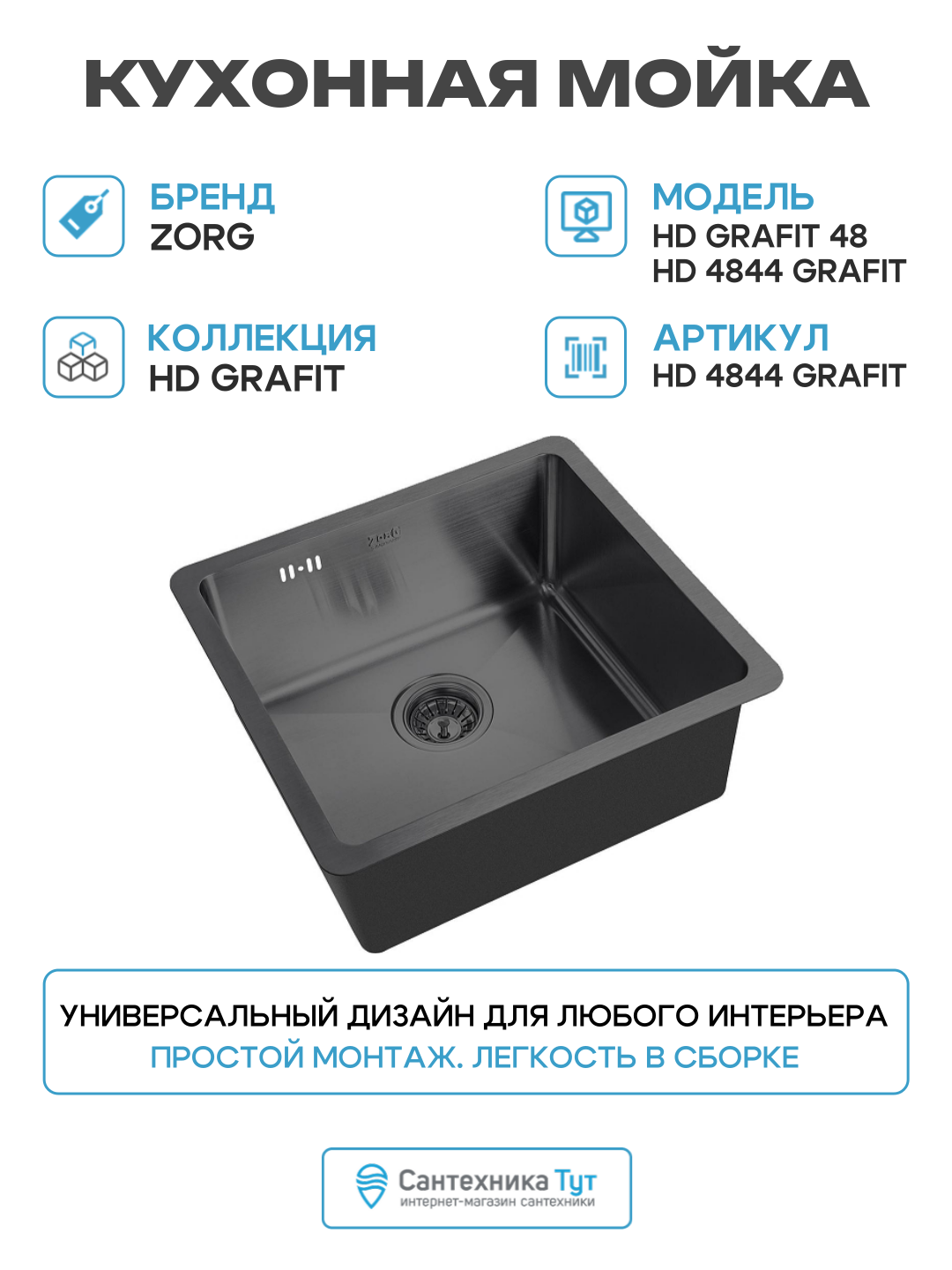 Купить Кухонная мойка ZorG HD Grafit 48 HD 4844 GRAFIT цвет Графит Прямоугольная Встраиваемый сверху, Встраиваемый снизу, Интегрированный с доставкой по всей России. Кухонная мойка ZorG HD Grafit 48 HD 4844 GRAFIT цвет Графит Прямоугольная Встраиваемый сверху, Встраиваемый снизу, Интегрированный: сравнение цен, характеристики, фото, актуальное наличие и цены.