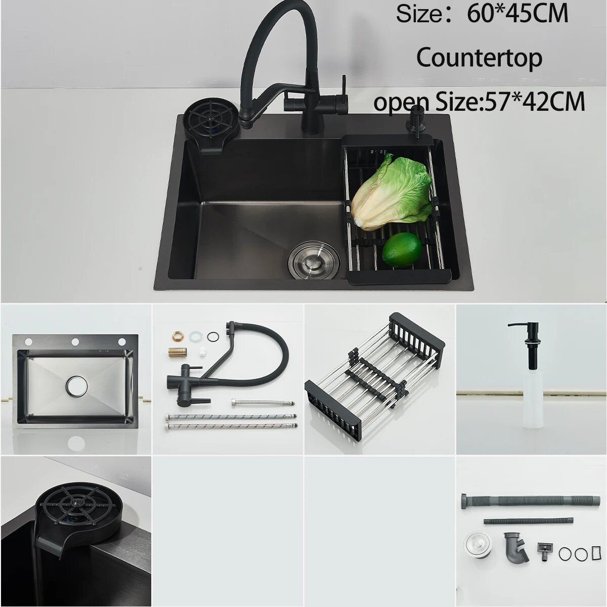 Купить Кухонная раковина из нержавеющей стали одночашевая 6045 Black с доставкой по всей России.