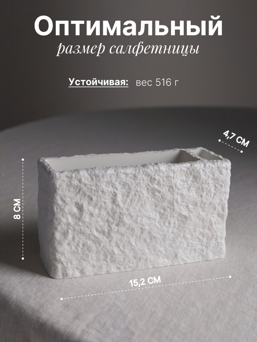 Салфетница на стол - это изысканное дополнение к вашей кухне или столу, выполненное из качественного гипса. Без лишних декоративных элементов, она подчеркивает простоту и элегантность вашего интерьера. Этот органайзер идеально подходит для размещения салфеток и зубочисток, добавляя уют и стиль к любому застолью, отлично будет смотреться в ресторане или в кафе. Благодаря своей универсальности, она может использоваться как для повседневного использования, так и для особых случаев, делая сервировку стола более привлекательной. Такая подставка прекрасно впишется в стиль лофт. Прекрасный и нужный подарок в каждый дом по любому поводу.
