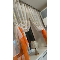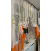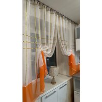 Кухонная шторка льняная с золотом и оранжевой вставкой, ширина 3м, высота 1,7м: сравнение цен, характеристики, фото, актуальное наличие и цены.
