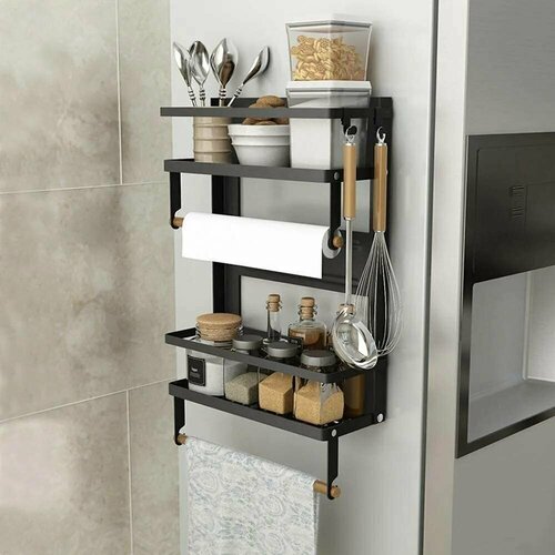 Купить Кухонная стойка-органайзер магнитный на холодильник (черная) с доставкой по всей России. Кухонная стойка-органайзер магнитный на холодильник (черная): сравнение цен, характеристики, фото, актуальное наличие и цены.