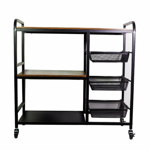 Купить Кухонная тележка Biotorg, 3 полки и 3 корзины, для хранения продуктов, 90х90х40 см с доставкой по всей России.