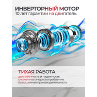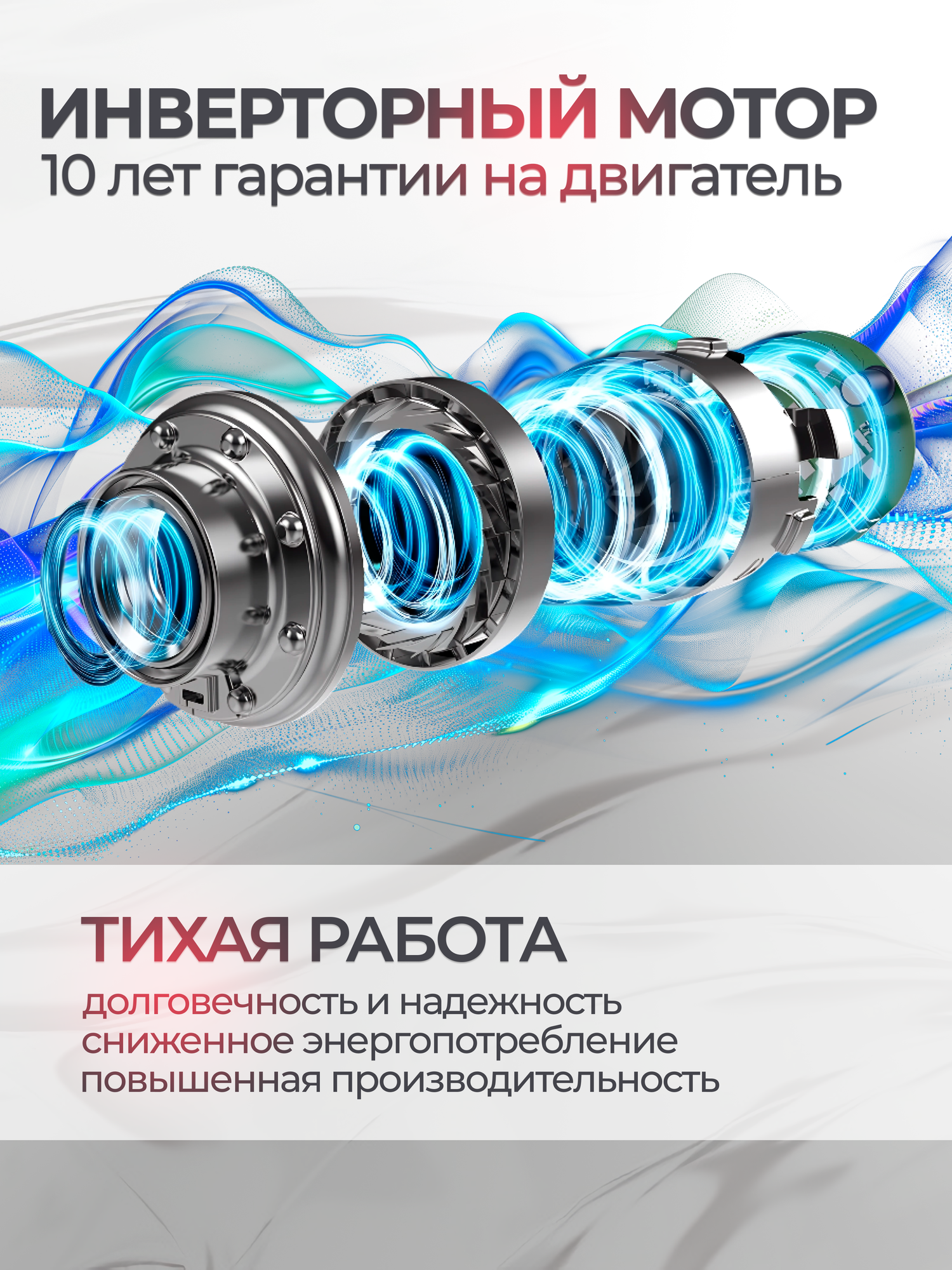 Главное преимущество модели — инверторный двигатель мощностью 110 Вт. Он работает тихо, потребляет меньше электроэнергии и отличается повышенным ресурсом по сравнению с традиционными моторами. Общая мощность вытяжки составляет 113,5 Вт, что обеспечивает эффективную работу при минимальном энергопотреблении. Инверторная технология делает устройство долговечным и надёжным, сохраняя высокую производительность на протяжении многих лет.