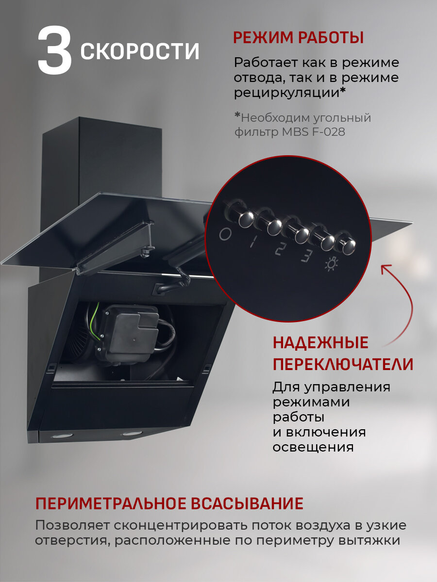 Купить Кухонная вытяжка наклонная MBS ALPINIA 160 GLASS BLACK/60 см/производительность 650м3/ч, низкий уровень шума. с доставкой по всей России. Кухонная вытяжка наклонная MBS ALPINIA 160 GLASS BLACK/60 см/производительность 650м3/ч, низкий уровень шума.: сравнение цен, характеристики, фото, актуальное наличие и цены.
