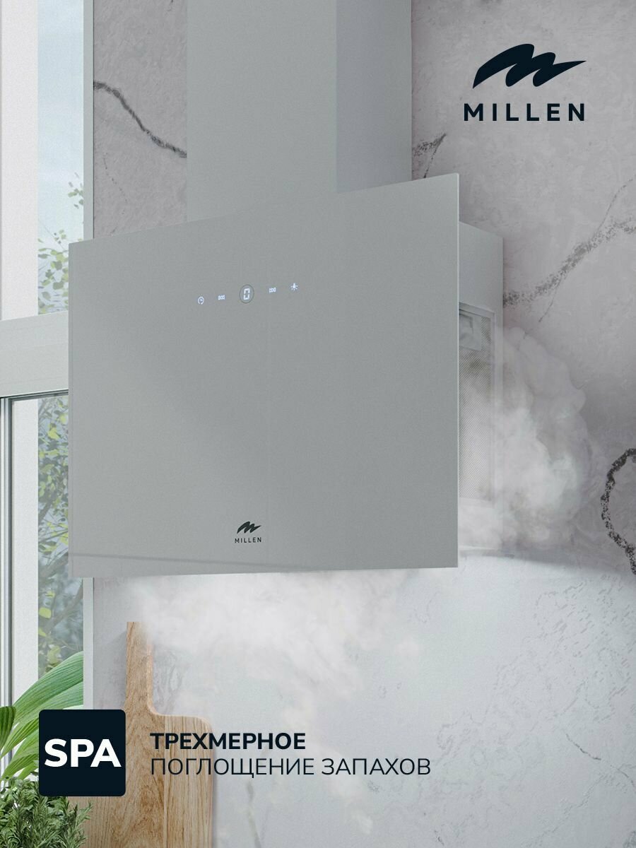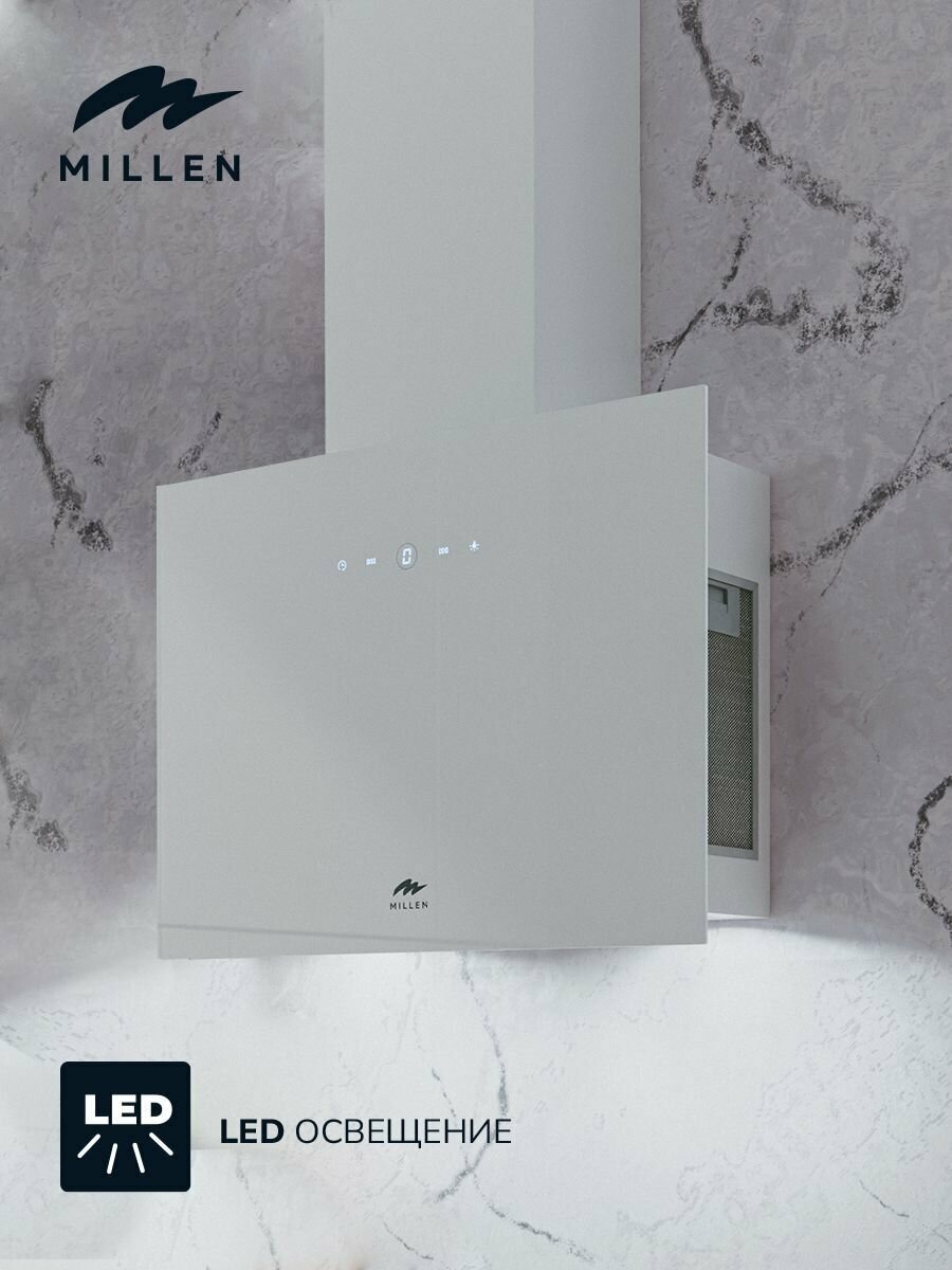 Кухонная вытяжка наклонная, MILLEN MKHG 602 WH, белый, сенсорное управление, 9 скоростей, Свободный выход 850-1050 м/ч: сравнение цен, характеристики, фото, актуальное наличие и цены.