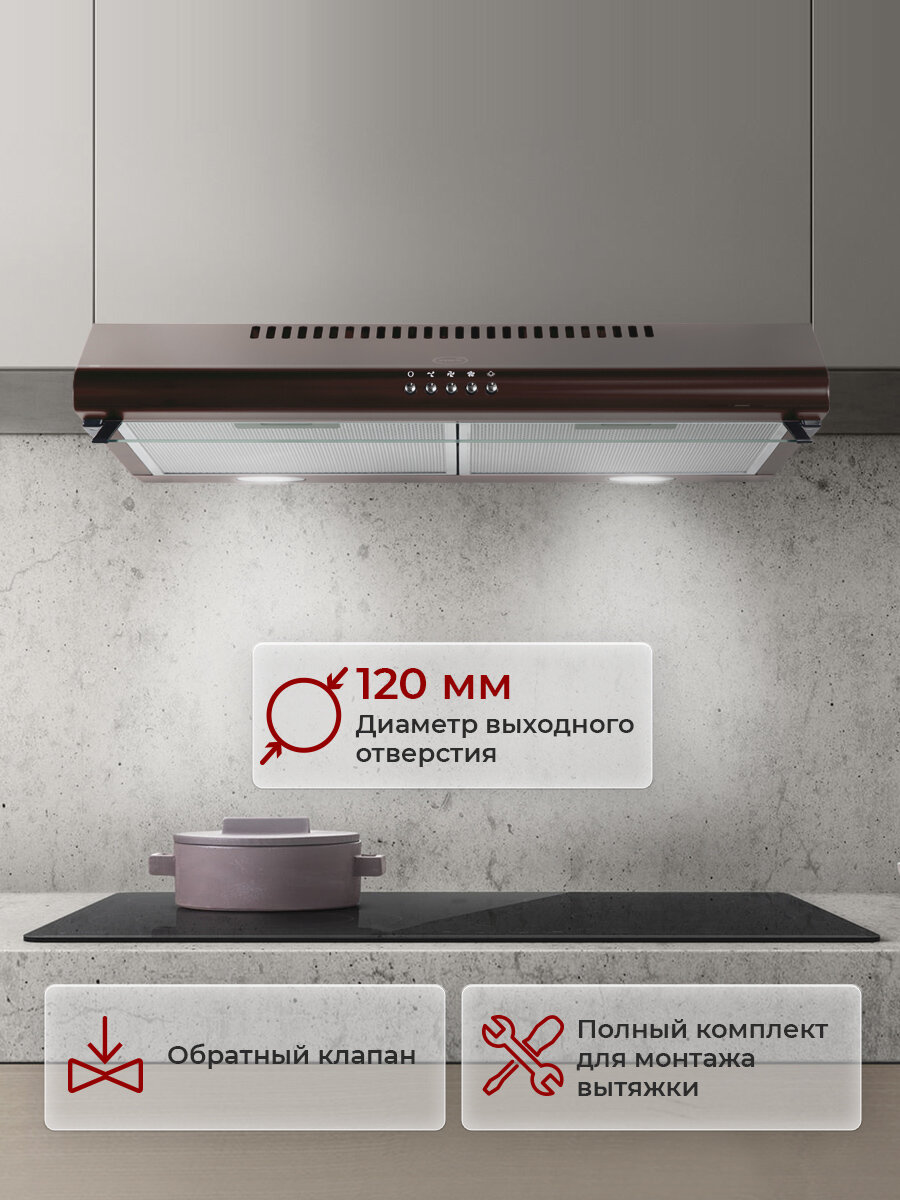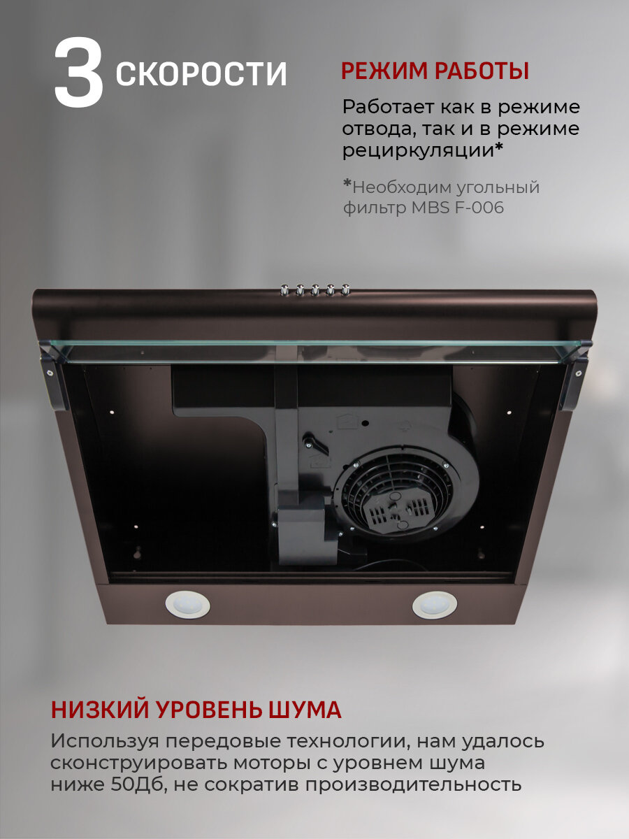 Купить Кухонная вытяжка подвесная MBS VELEZIA 150 BROWN/50 см/производительность 650м3/ч, низкий уровень шума. с доставкой по всей России. Кухонная вытяжка подвесная MBS VELEZIA 150 BROWN/50 см/производительность 650м3/ч, низкий уровень шума.: сравнение цен, характеристики, фото, актуальное наличие и цены.