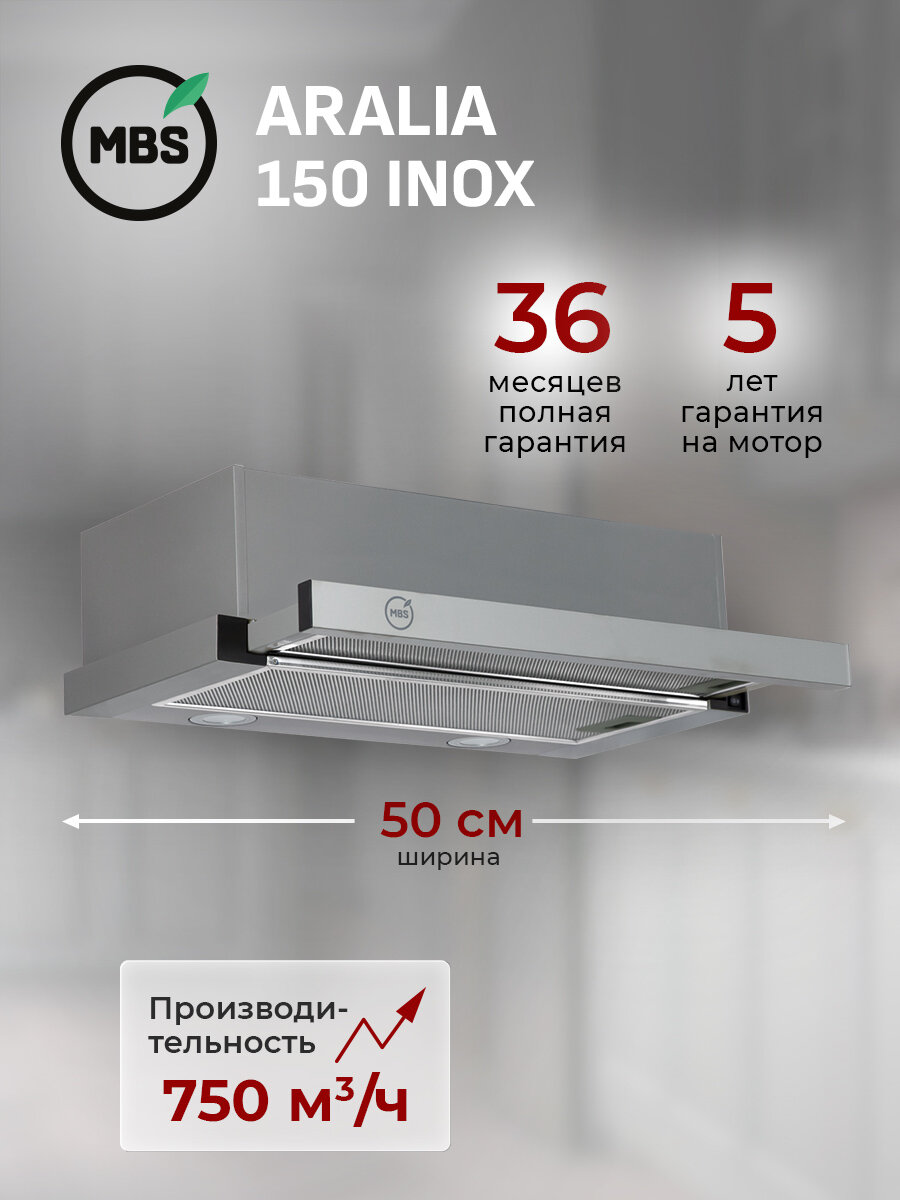 Купить Кухонная вытяжка встраиваемая MBS ARALIA 150 INOX/50 см/производительность 750м3/ч, низкий уровень шума. с доставкой по всей России. Кухонная вытяжка встраиваемая MBS ARALIA 150 INOX/50 см/производительность 750м3/ч, низкий уровень шума.: сравнение цен, характеристики, фото, актуальное наличие и цены.