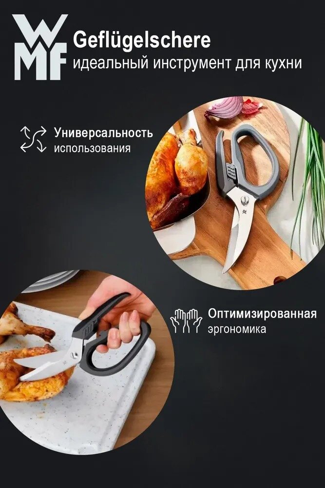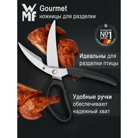 Мощные ножницы WMF Gourmet для разделки птицы — профессиональный инструмент, который справляется с самыми сложными задачами. Если вам нужен надежный помощник для работы с курицей, рыбой или мясом, вы его нашли.