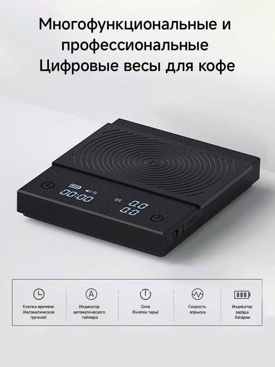 2. [добавлены функция измерения расхода и автофункция] - Эти цифровые весы для эспрессо, помимо встроенного таймера, оснащены функцией измерения скорости потока, которая поможет вам отточить скорость и силу наливания при приготовлении ароматного кофе. А функция автоматического отсчета времени автоматически включится, когда весы почувствуют изменение веса.