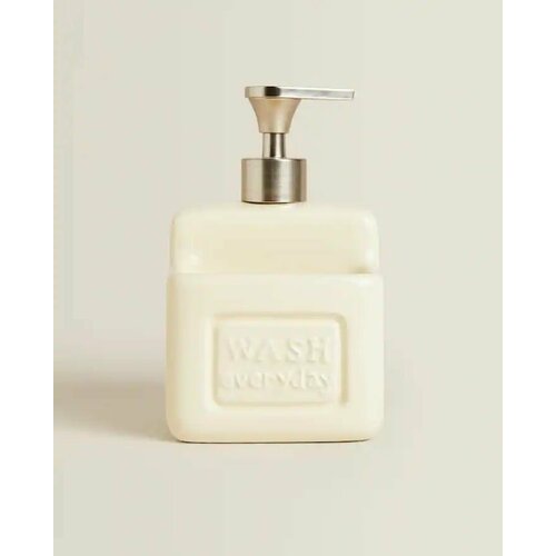 Имеет дополнительное отделение для губки. Дозатор из керамики и нержавеющей стали для жидкости для мытья посуды. Вы можете залить в него любимую жидкость для мытья посуды. Доступен в кремовом и черном цветах.