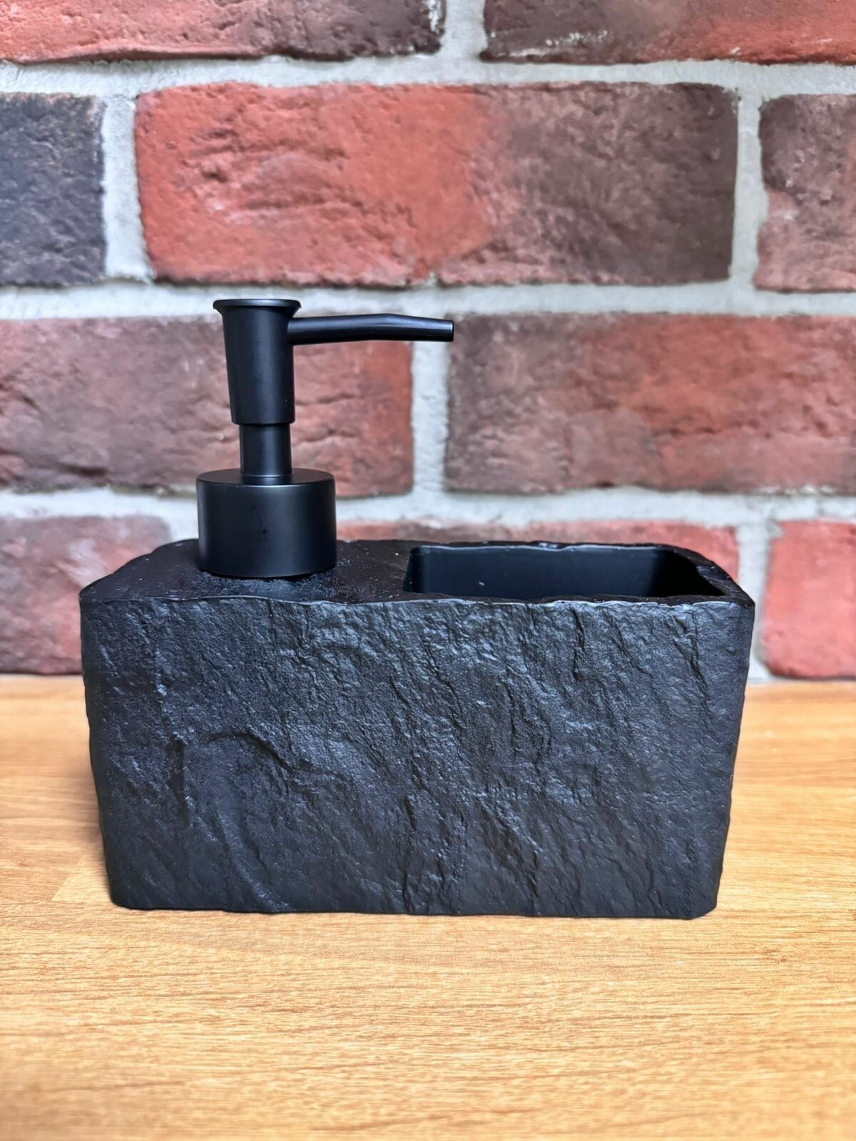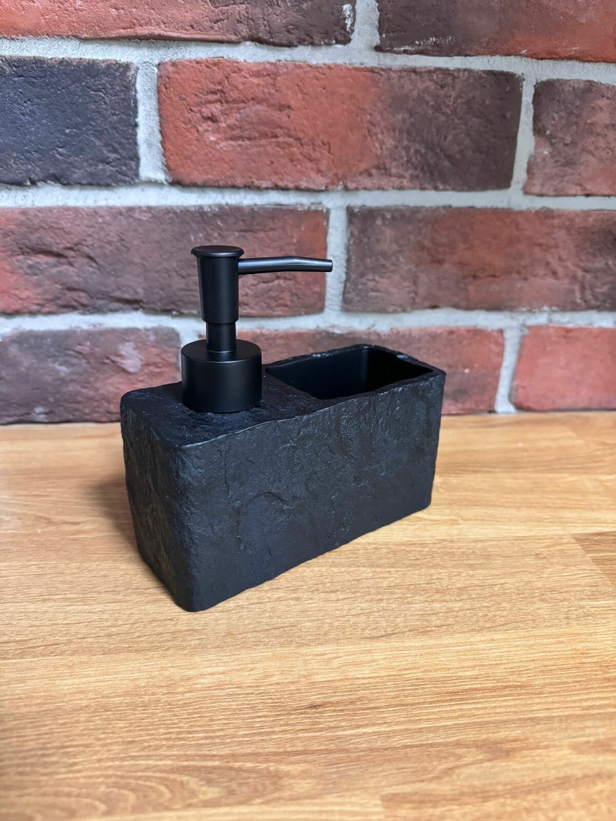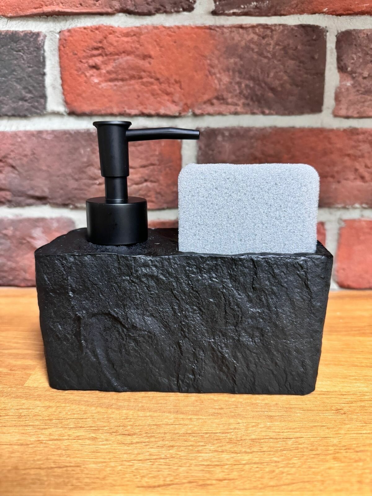 Дозатор для моющего средства на кухню , диспенсер для мыла с губкой, «Камень» черный мини c черным дозатором.: сравнение цен, характеристики, фото, актуальное наличие и цены.