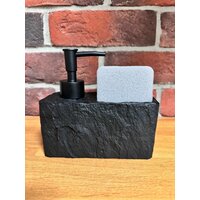 Купить Дозатор для моющего средства на кухню , диспенсер для мыла с губкой, «Камень» черный мини c черным дозатором. с доставкой по всей России.
