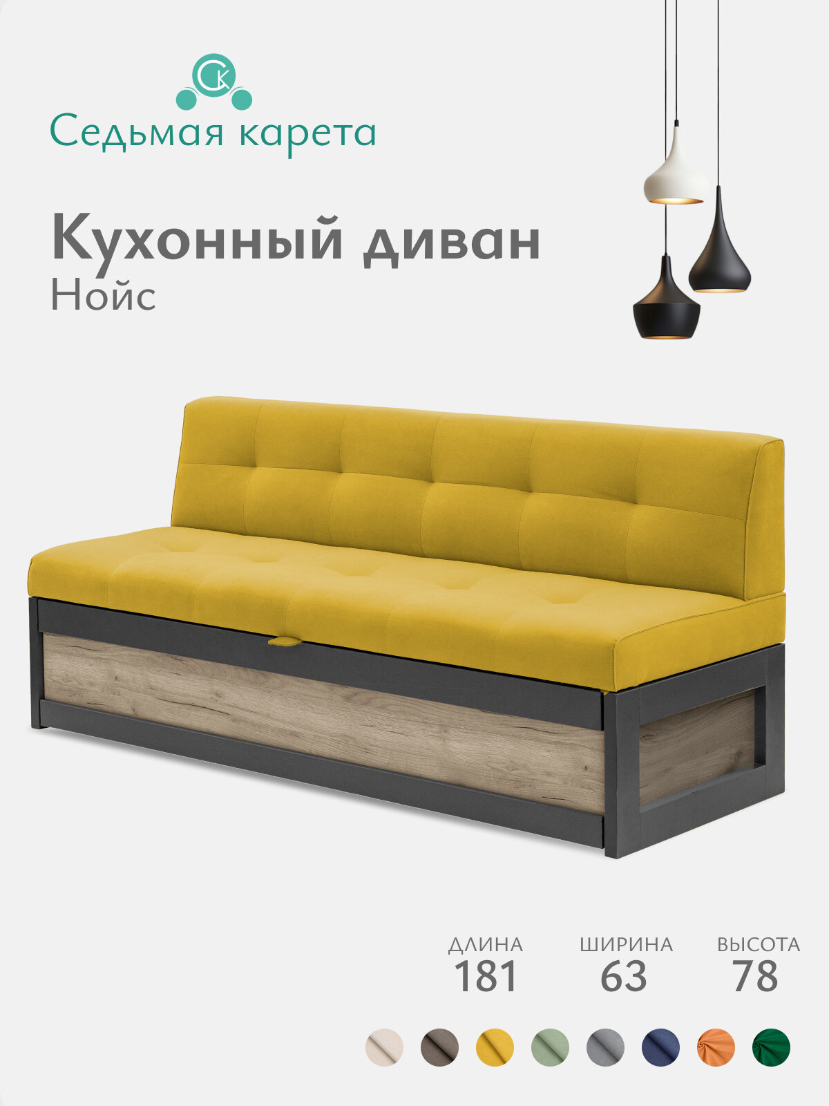 Кухонный диван Нойс 181х63х78 см. Дуб Крафт Серый Коннект 43 прямой раскладной диван со спальным местом. Желтый, Велюр: сравнение цен, характеристики, фото, актуальное наличие и цены.