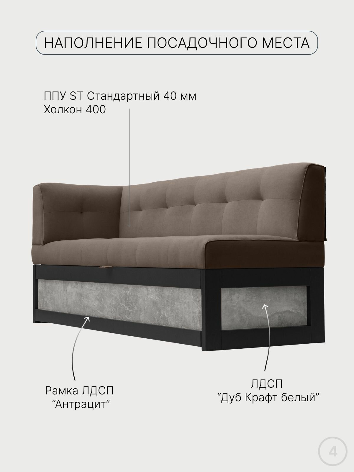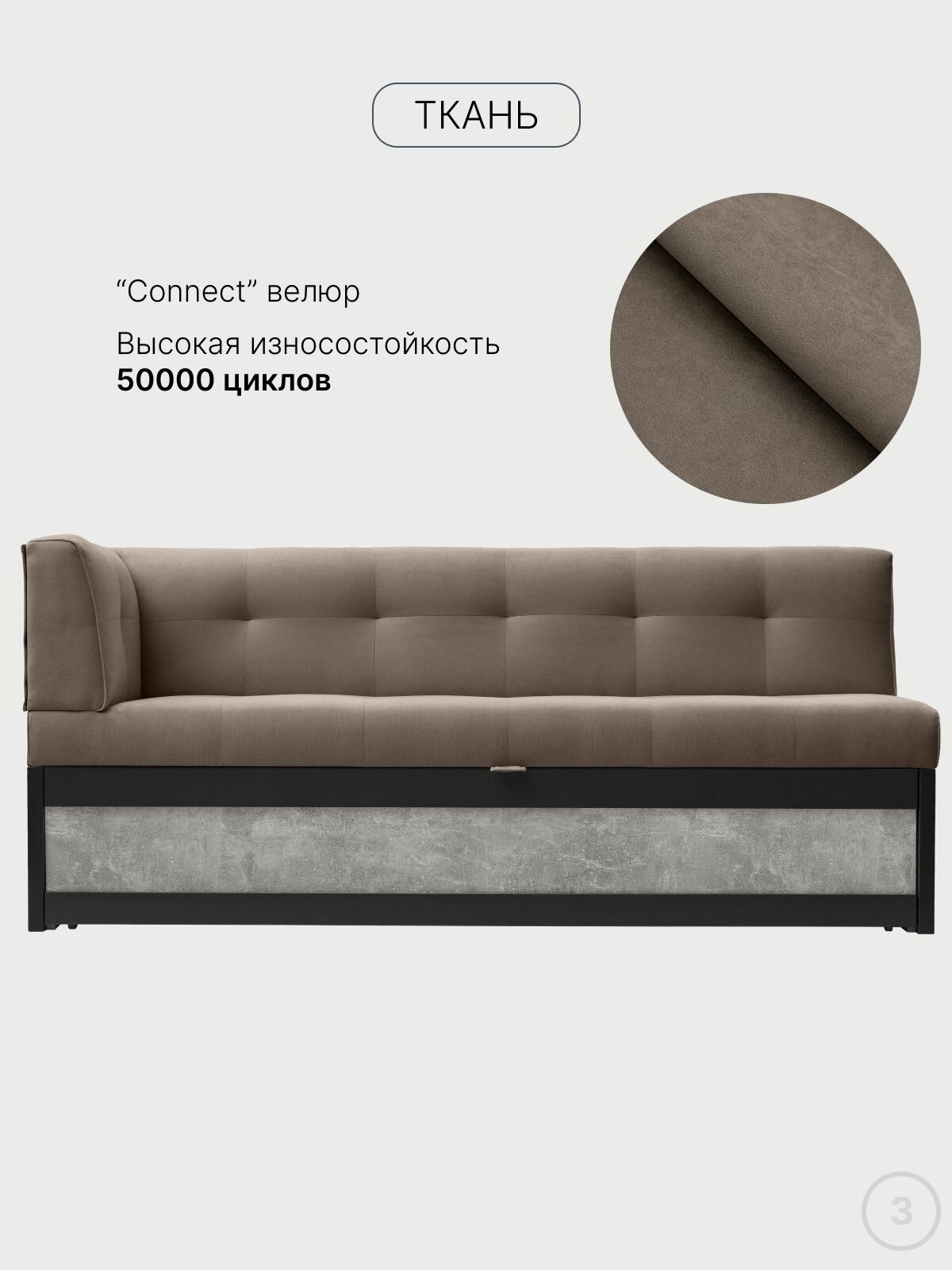 Кухонный диван Нойс с углом 181х63х78 см. Левый, Ателье светлое, Коннект 31, прямой раскладной диван со спальным местом. Светло-коричневый, Велюр, для дома и офиса: сравнение цен, характеристики, фото, актуальное наличие и цены.