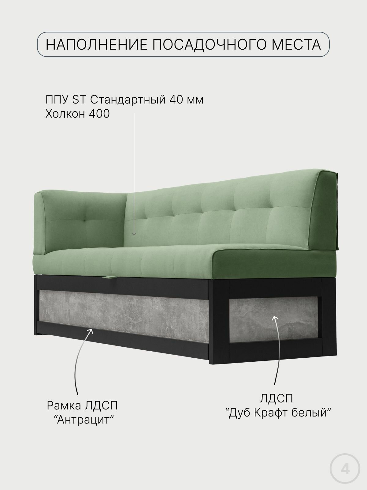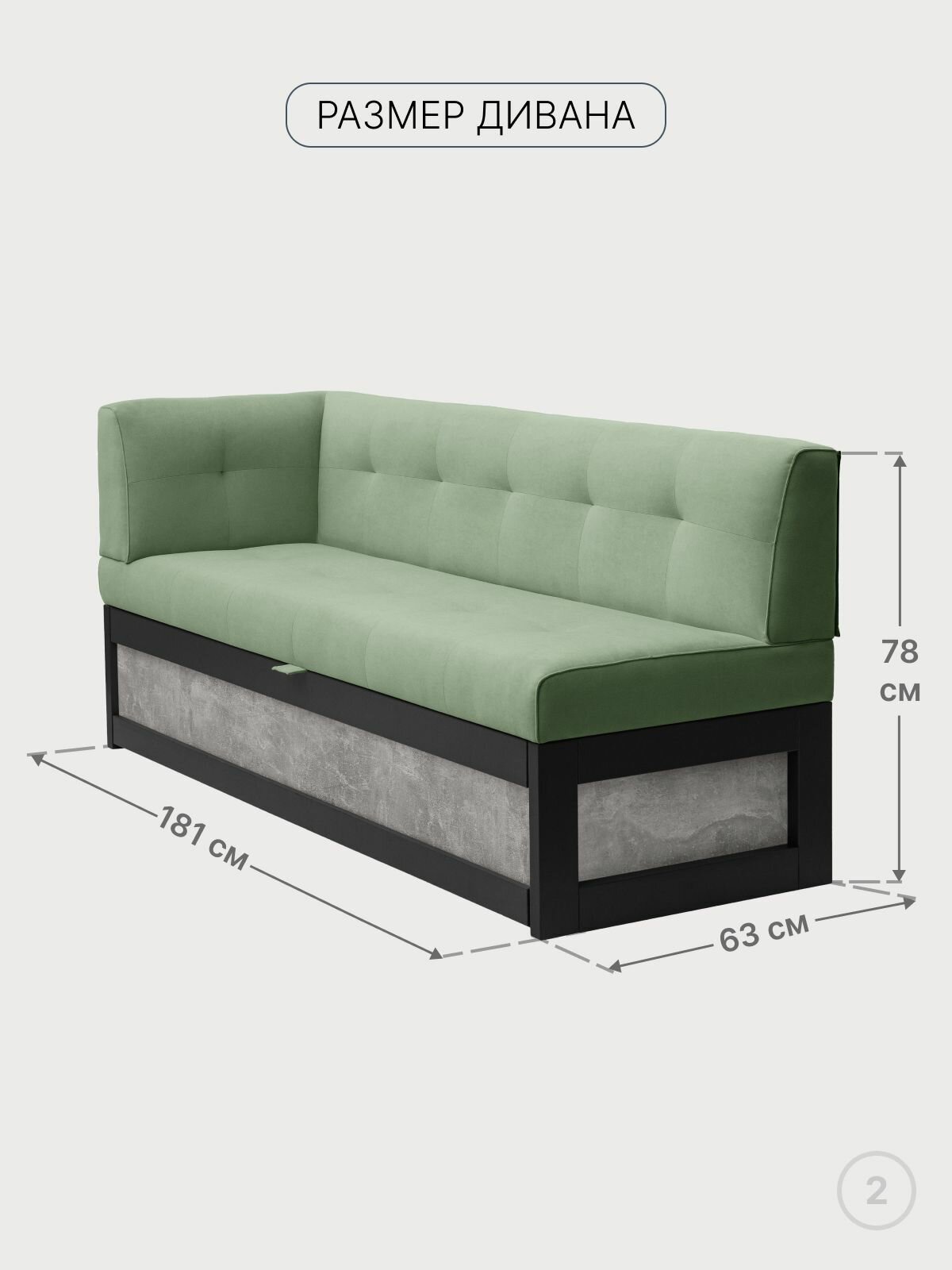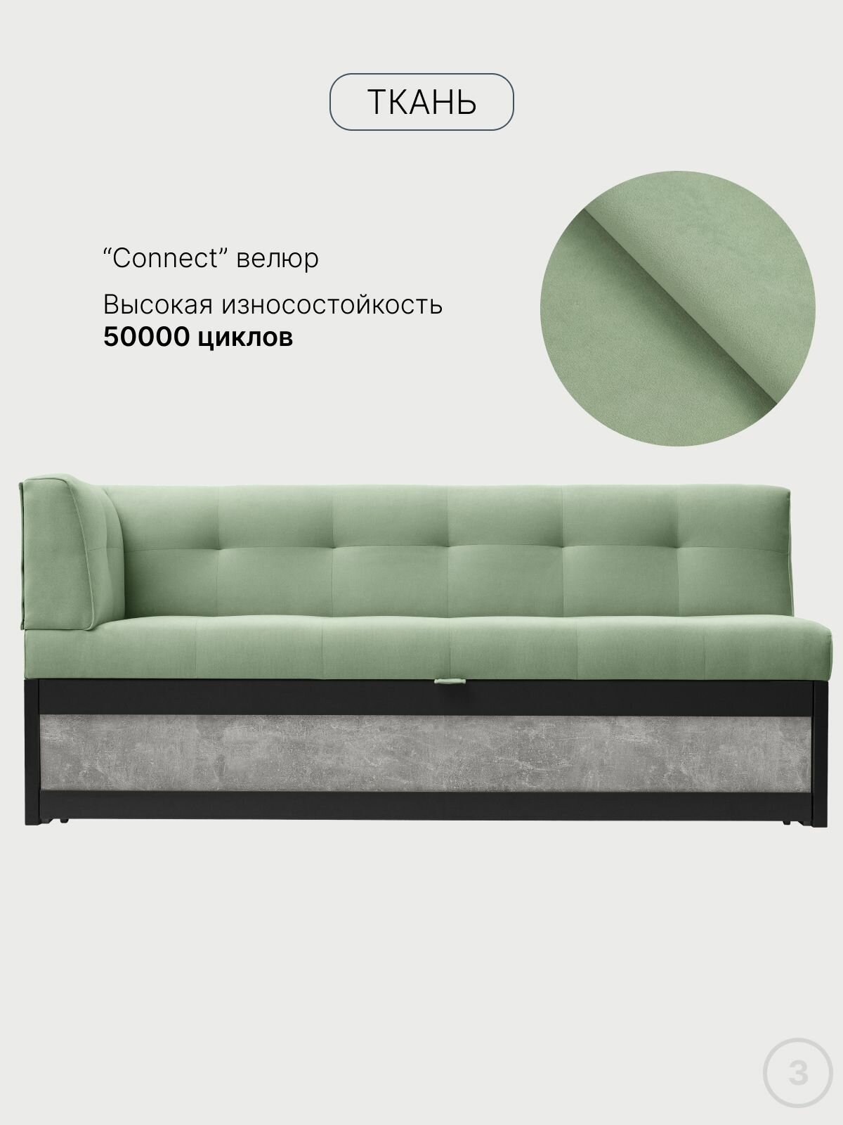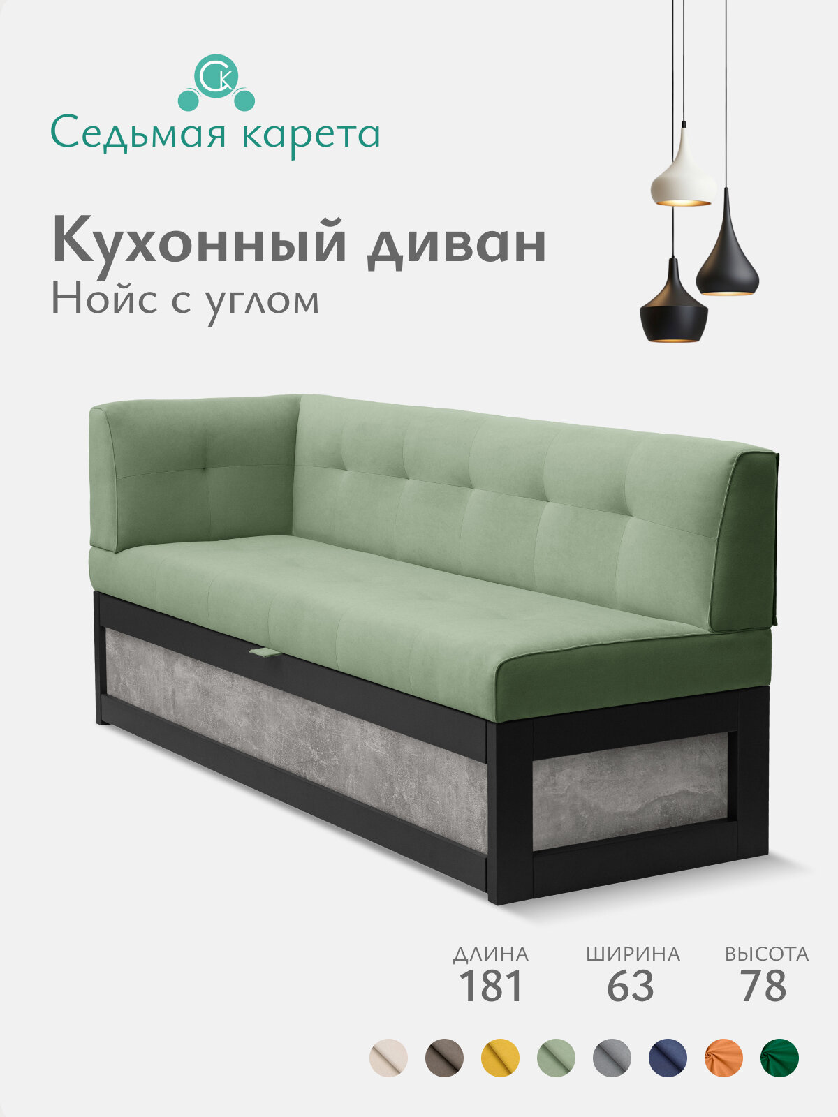 Кухонный диван Нойс с углом 181х63х78 см. Левый, Ателье светлое, Коннект 70, прямой раскладной диван со спальным местом. Светло-зеленый, Велюр, для дома и офиса: сравнение цен, характеристики, фото, актуальное наличие и цены.
