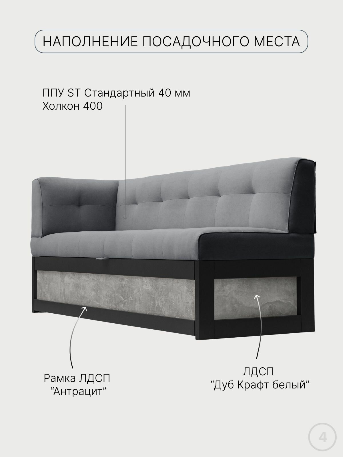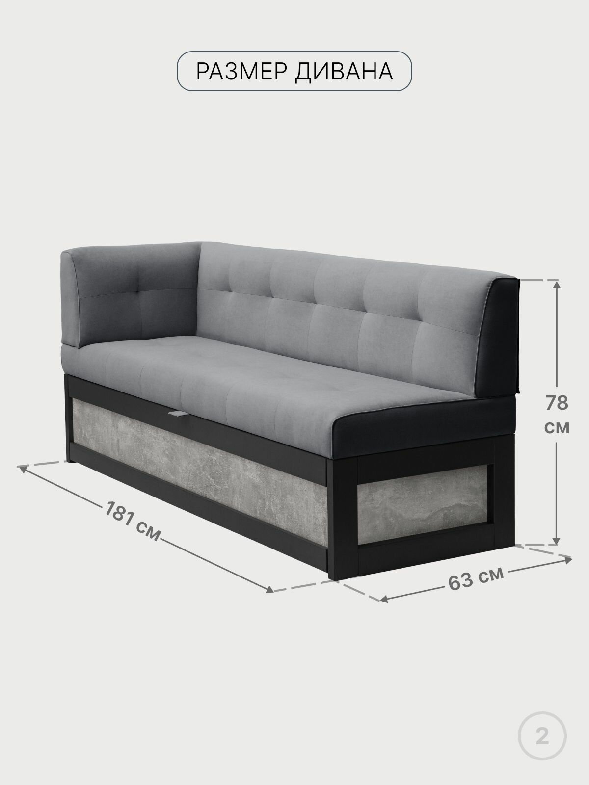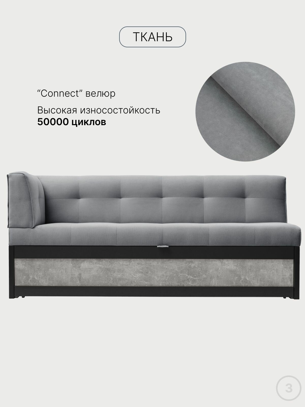 Кухонный диван Нойс с углом 181х63х78 см. Левый, Ателье светлое, Коннект 82, прямой раскладной диван со спальным местом. Серый, Велюр, для дома и офиса: сравнение цен, характеристики, фото, актуальное наличие и цены.