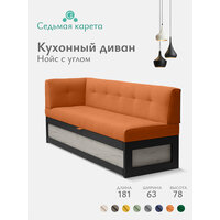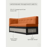 Купить Кухонный диван Нойс с углом 181х63х78 см. Левый, Дуб крафт белый, Мелисса 12, прямой раскладной диван со спальным местом. Оранжевый, Велюр, для дома и офиса с доставкой по всей России.