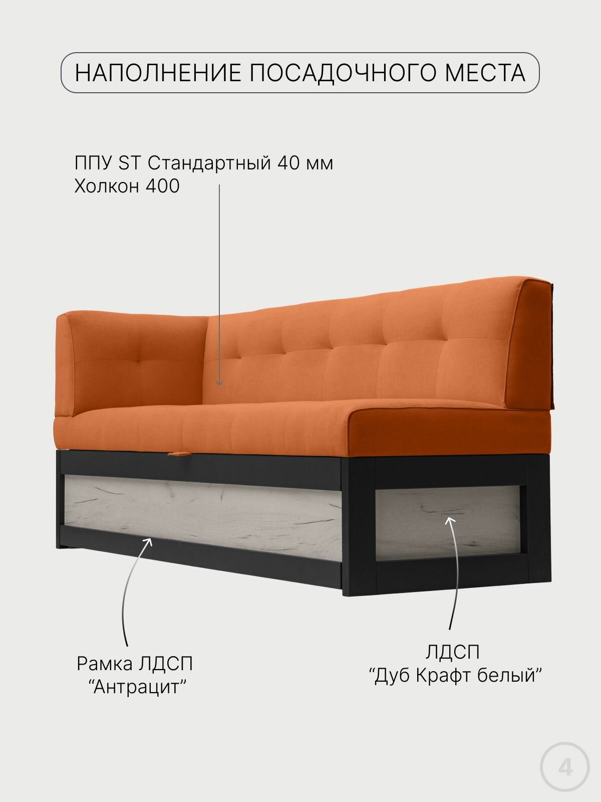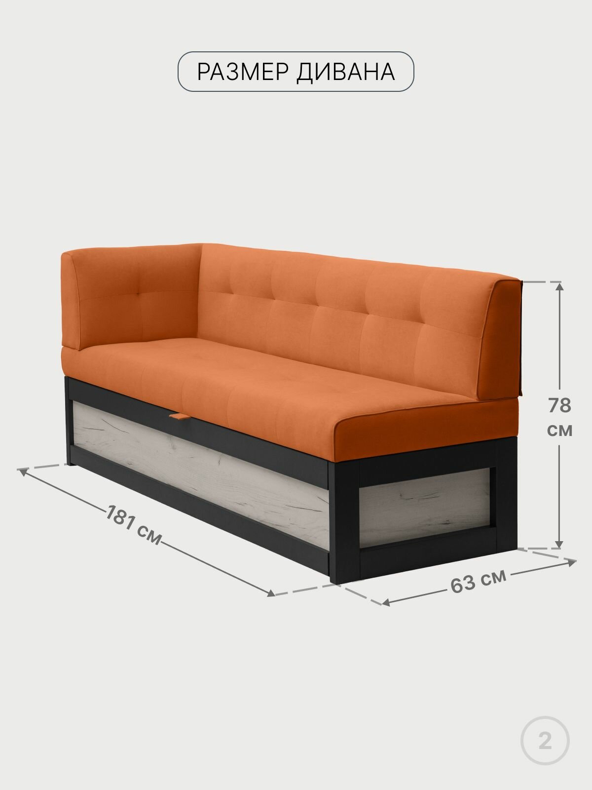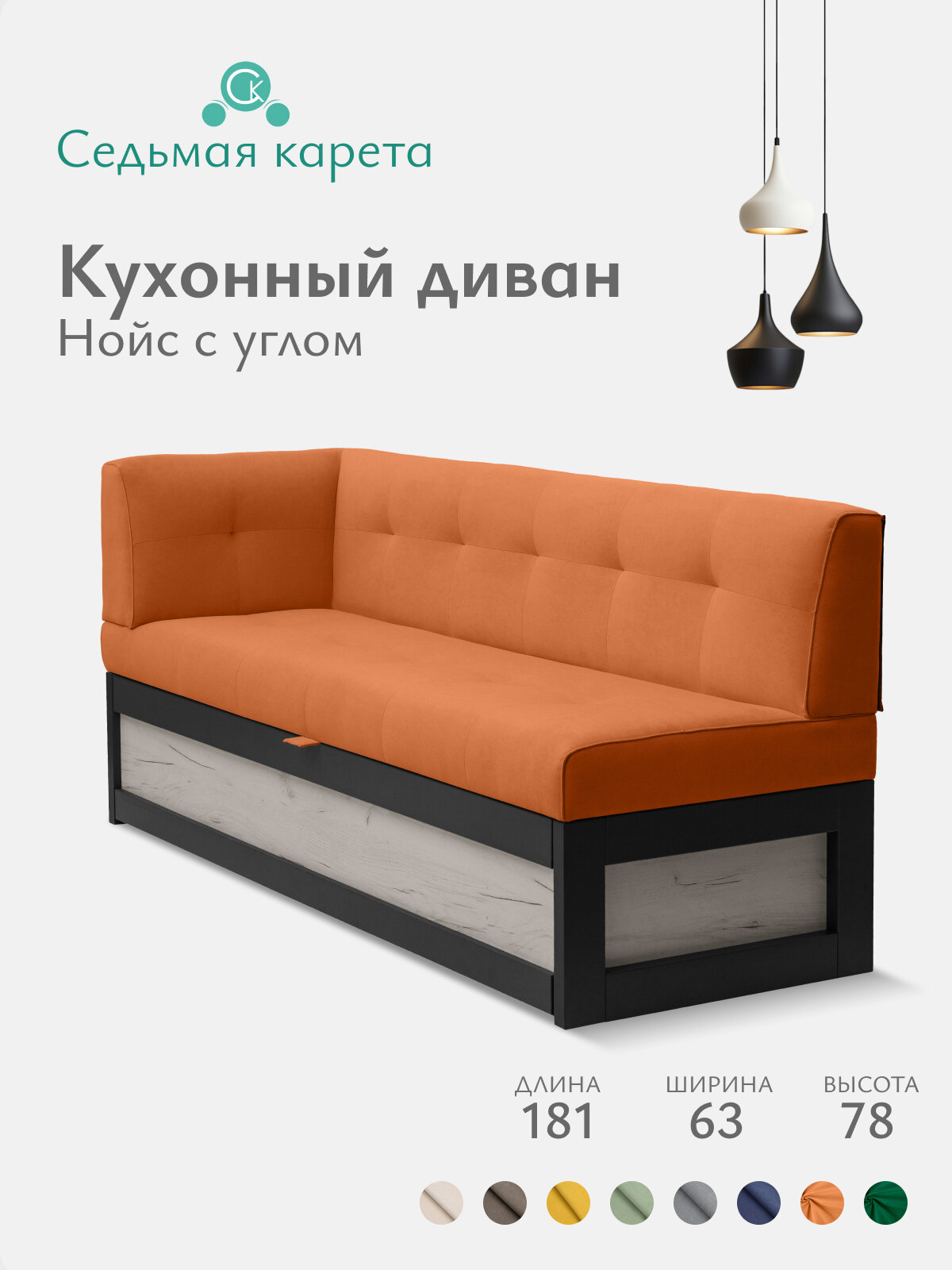 Кухонный диван Нойс с углом 181х63х78 см. Левый, Дуб крафт белый, Мелисса 12, прямой раскладной диван со спальным местом. Оранжевый, Велюр, для дома и офиса: сравнение цен, характеристики, фото, актуальное наличие и цены.