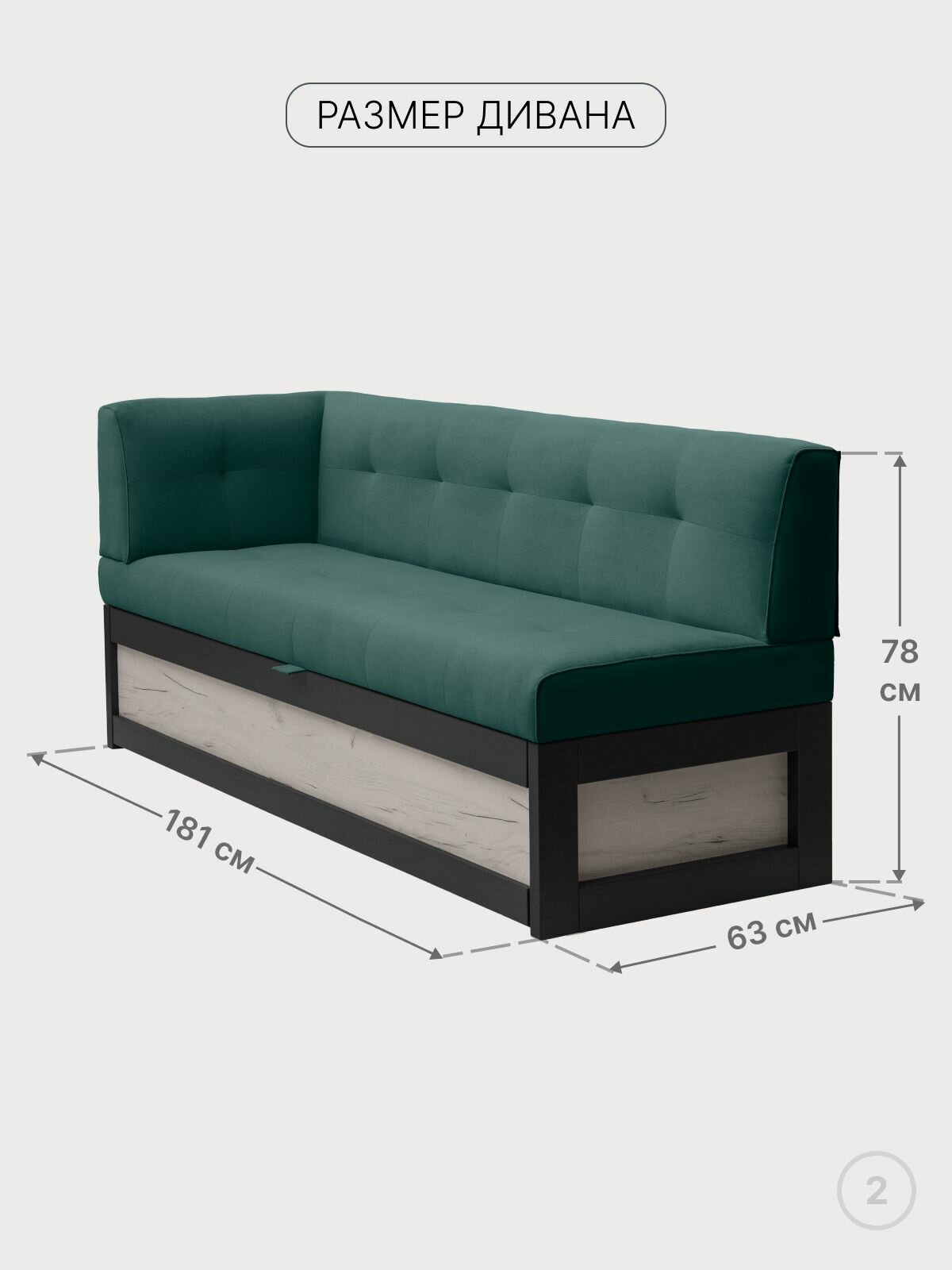 Купить Кухонный диван Нойс с углом 181х63х78 см. Левый, Дуб крафт белый, Мелисса 39, прямой раскладной диван со спальным местом. Зеленый, Велюр, для дома и офиса с доставкой по всей России.