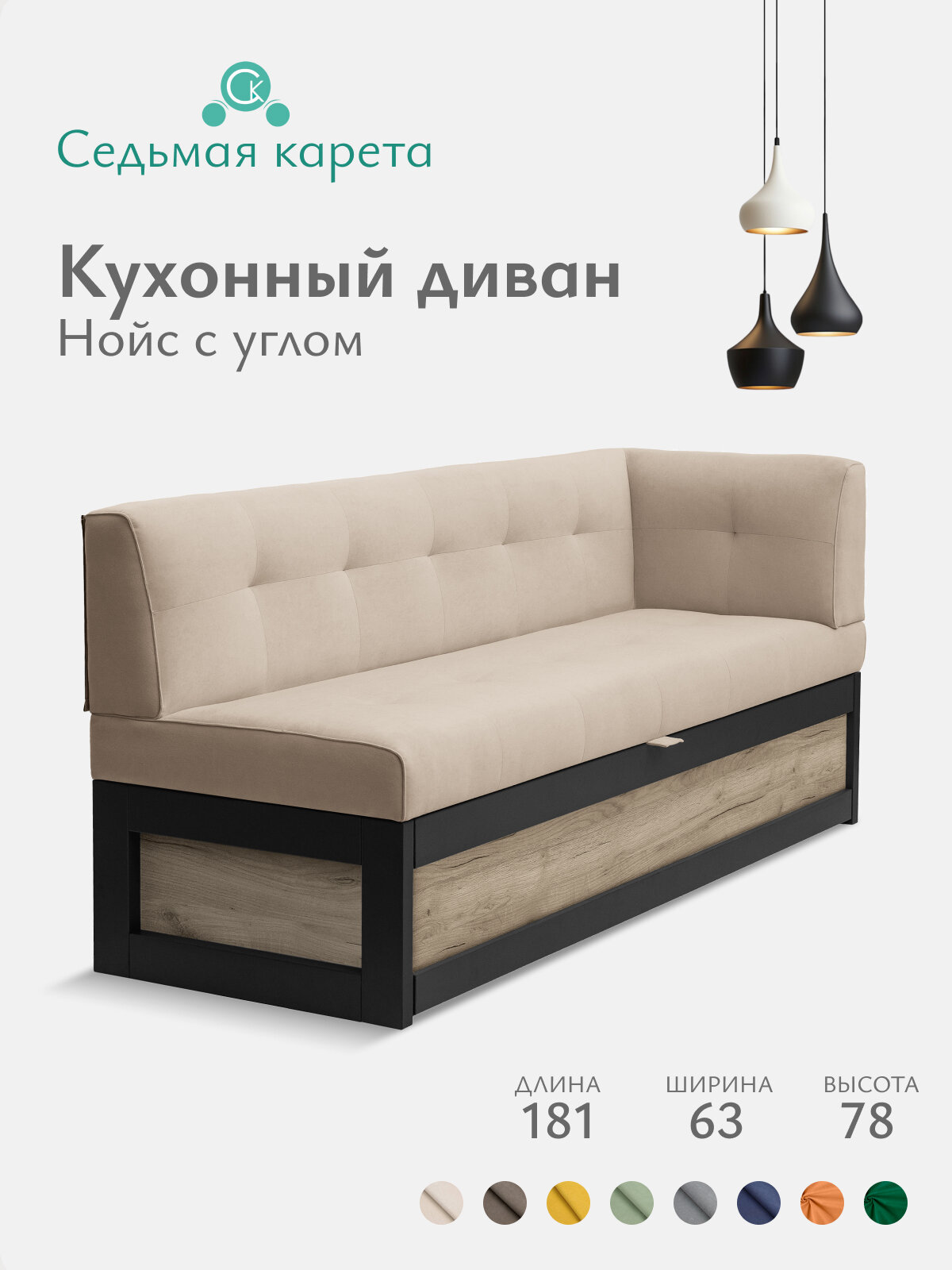 Кухонный диван Нойс с углом 181х63х78 см. Правый, Дуб крафт серый, Коннект 5, прямой раскладной диван со спальным местом. Бежевый Велюр, для дома и офиса: сравнение цен, характеристики, фото, актуальное наличие и цены.