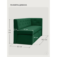 Купить Кухонный диван Верона-1 правый угол 183x63x79 см Мелисса 39 — велюр, зеленый, прямой раскладной диван со спальным местом с доставкой по всей России.