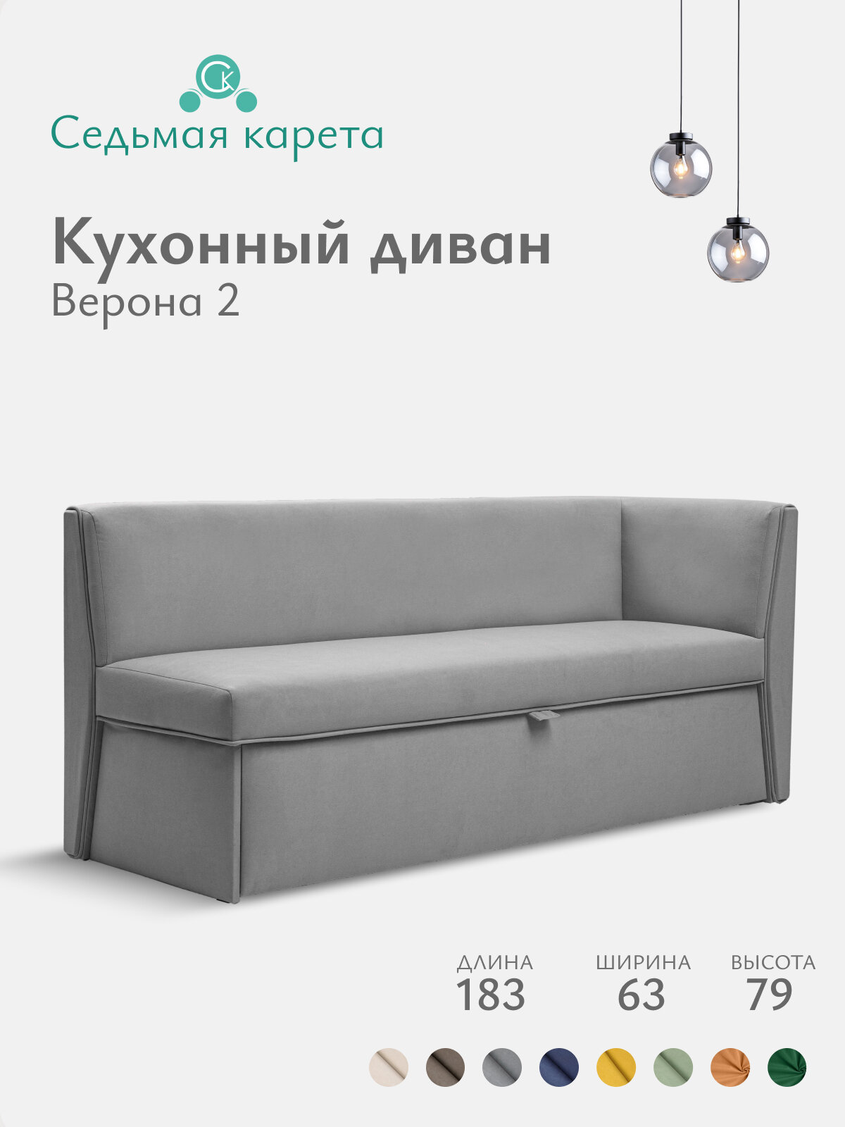 Кухонный диван Верона-2 правый угол, 183x63x79 см, Коннект 82 — велюр, серый, прямой раскладной диван со спальным местом: сравнение цен, характеристики, фото, актуальное наличие и цены.