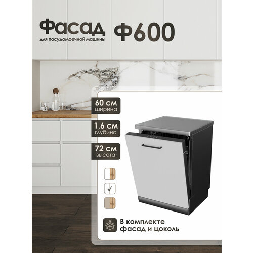 Кухонные модули – лучшее решение для обустройства кухни в квартире, в доме или на даче. Теперь вы можете собрать свою кухню! Классический белый цвет подойдет к любому интерьерному решению. Фасад для встраиваемой посудомоечной машины (Ф600): ширина 60 см. В фасаде нет отверстий под технику, так как каждая модель посудомоечных машин имеет свои индивидуальные фурнитуру и инструкцию. Материал ЛДСП. Благодаря готовому дизайну кухни, вы можете смоделировать гарнитур, исходя из размеров помещения. Размеры отображены на фото. Усиленная упаковка позволяет избежать сколов и царапин при транспортировке. Благодарим за доверие! Приятных покупок!