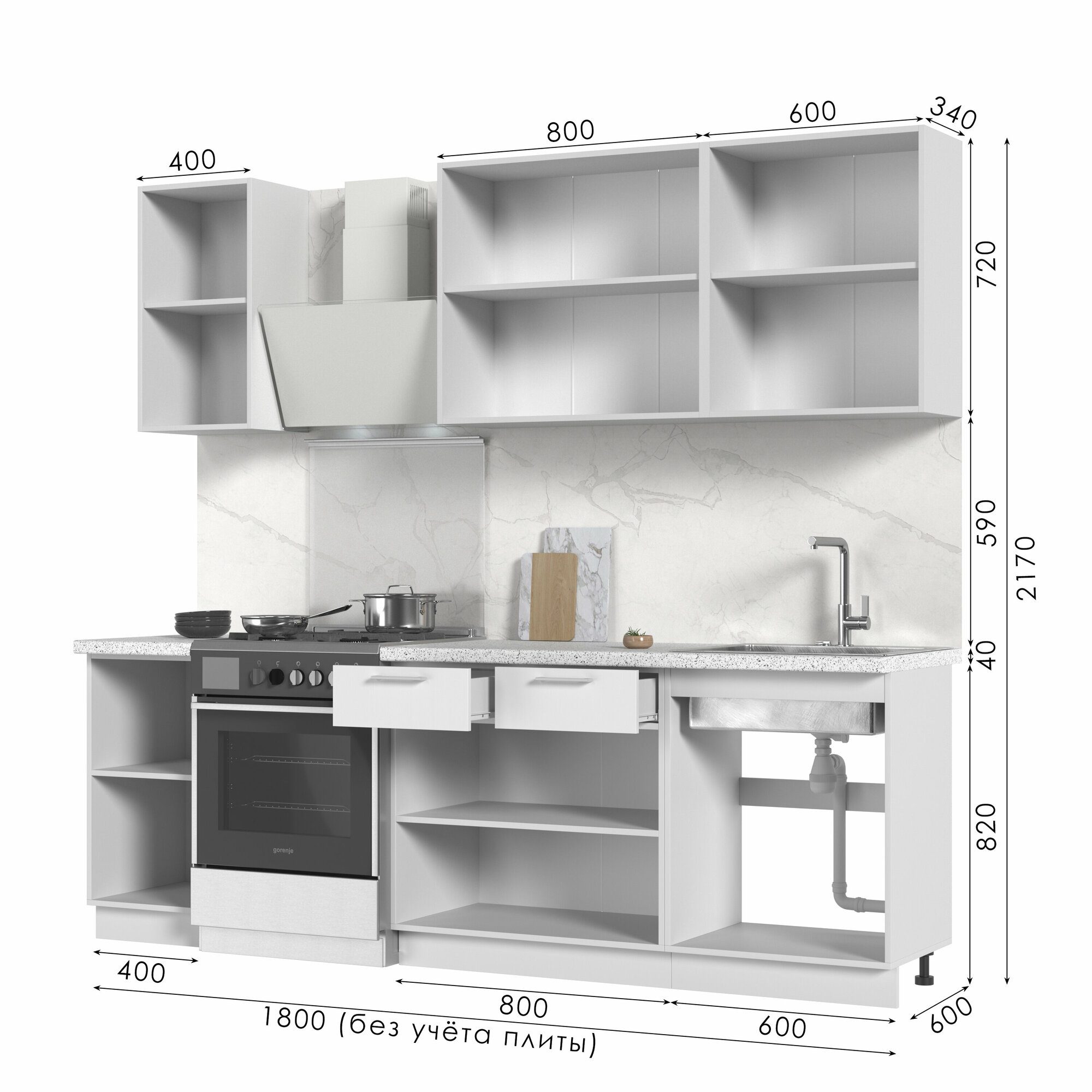 Кухонный гарнитур, без столешницы, Кухня Катрин 180см Белый / Софт Вайт: сравнение цен, характеристики, фото, актуальное наличие и цены.