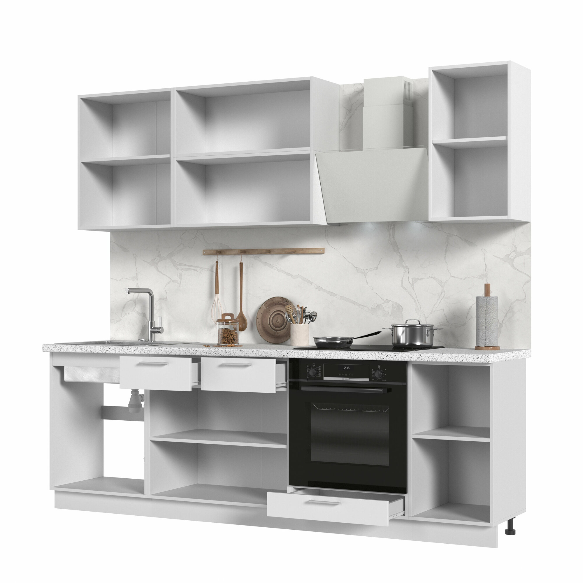Купить Кухонный гарнитур, без столешницы, Кухня Катрин 240см Белый / Софт Вайт с доставкой по всей России.