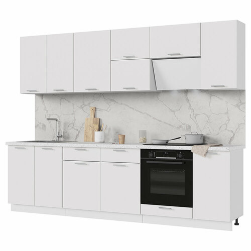 Купить Кухонный гарнитур, без столешницы, Кухня Ксения 280см Белый / Белый глянец с доставкой по всей России.