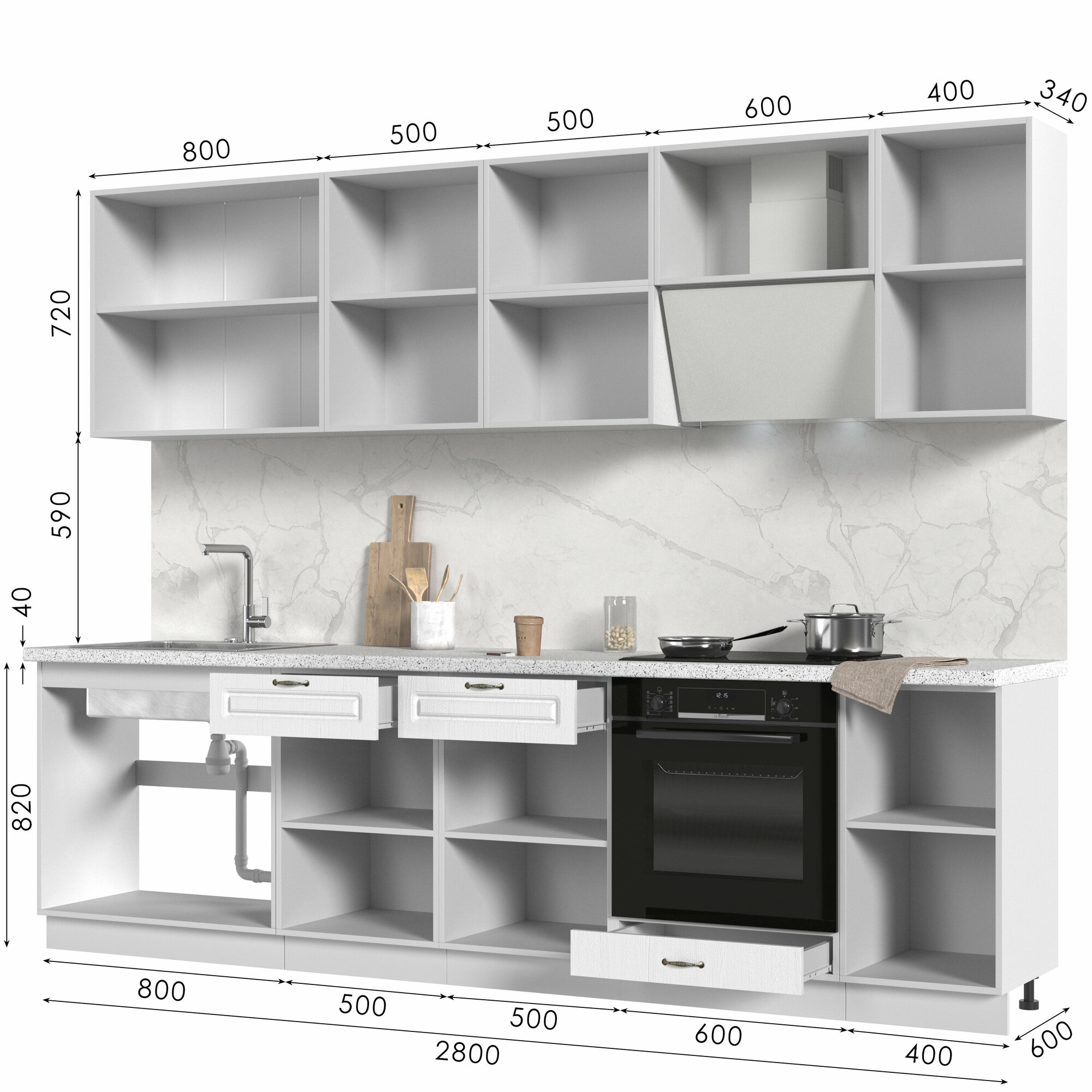 Кухонный гарнитур, без столешницы, Кухня Модена 280см Белый / Дуб Белый: сравнение цен, характеристики, фото, актуальное наличие и цены.