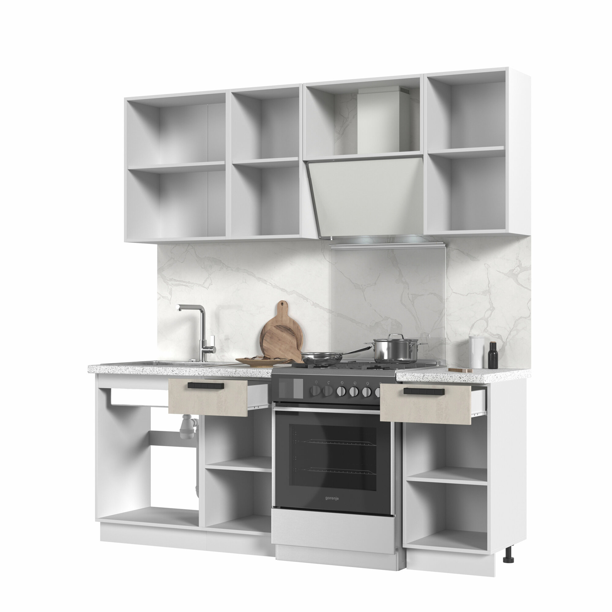 Купить Кухонный гарнитур, без столешницы, Кухня Пасаденна 200см Белый / Шелковый камень с доставкой по всей России.