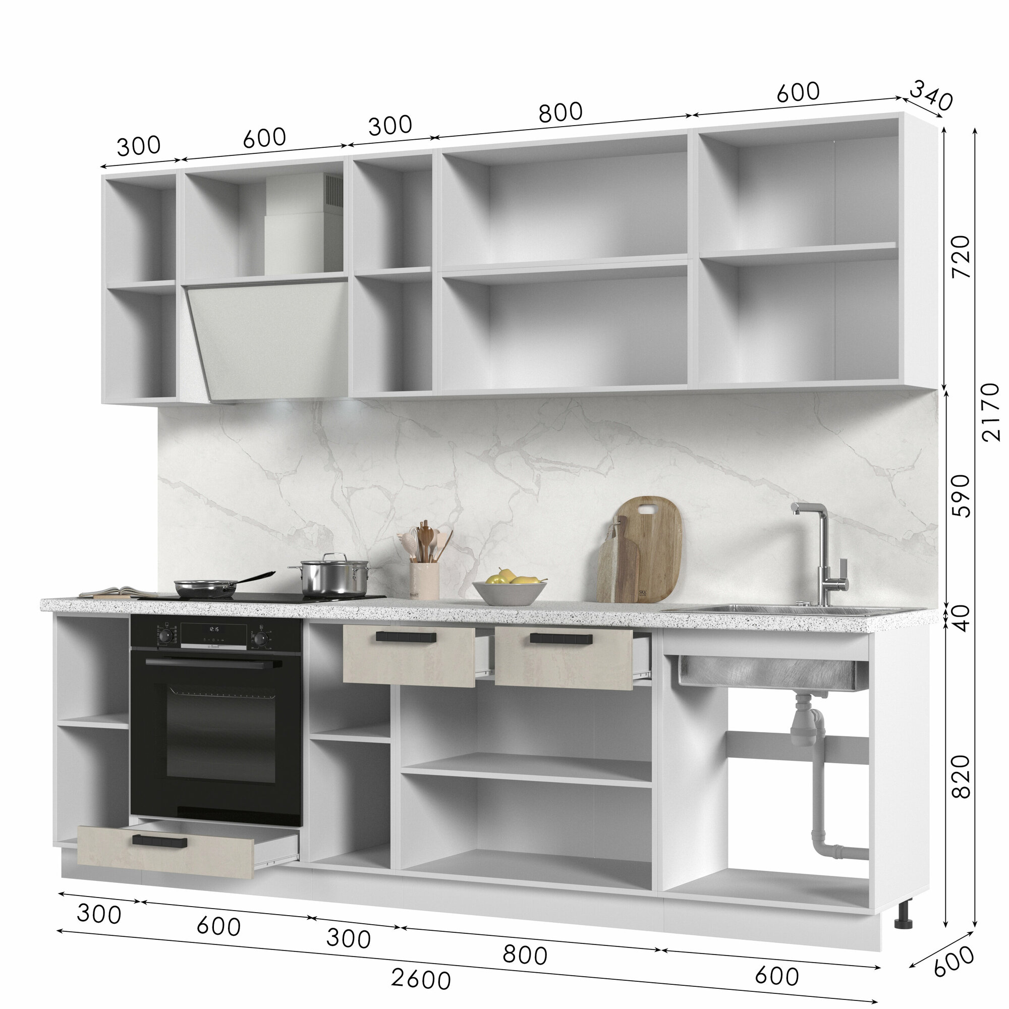| Подробная комплектация | Верхние модули: ШВ400, ШВ600, ШВ800, Нижние модули: ШНМ600, ШН1Я800, ШН400 |