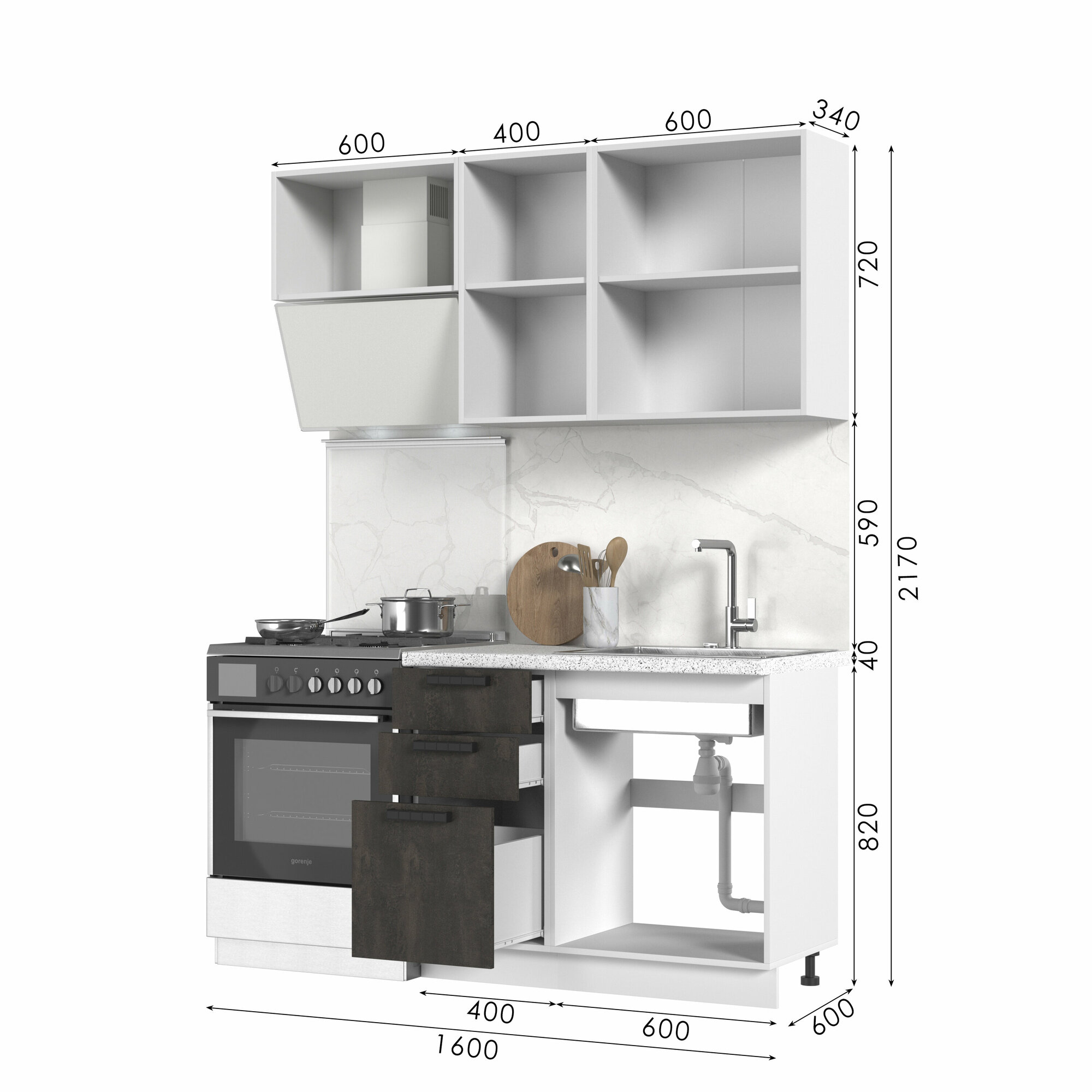 Кухонный гарнитур, без столешницы, Кухня Пасаденна 160см Белый / Угольный камень: сравнение цен, характеристики, фото, актуальное наличие и цены.