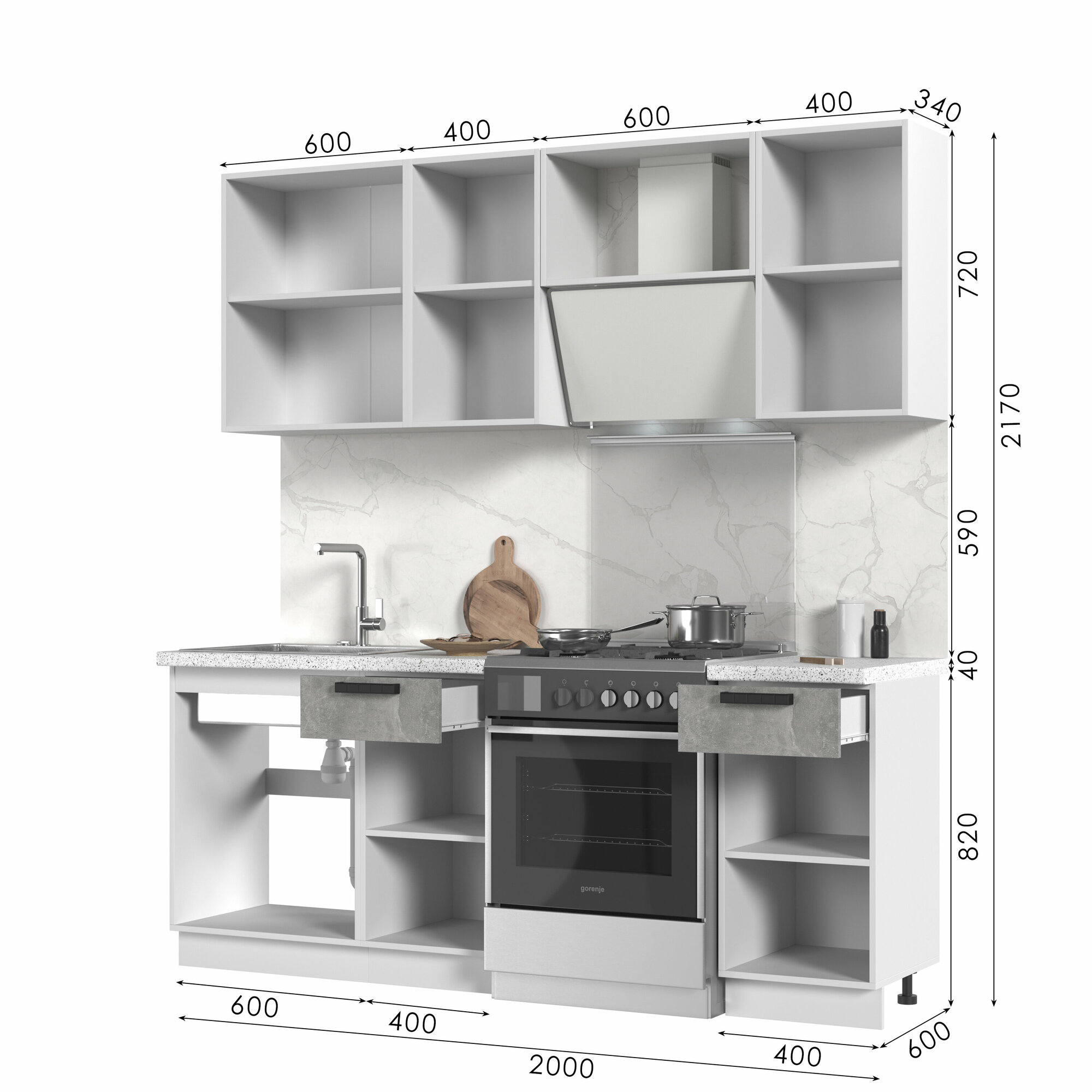 | Подробная комплектация | Верхние модули: ШВ400, ШВ600, ШВ800, Нижние модули: ШНМ600, ШН1Я800, ШН400 |