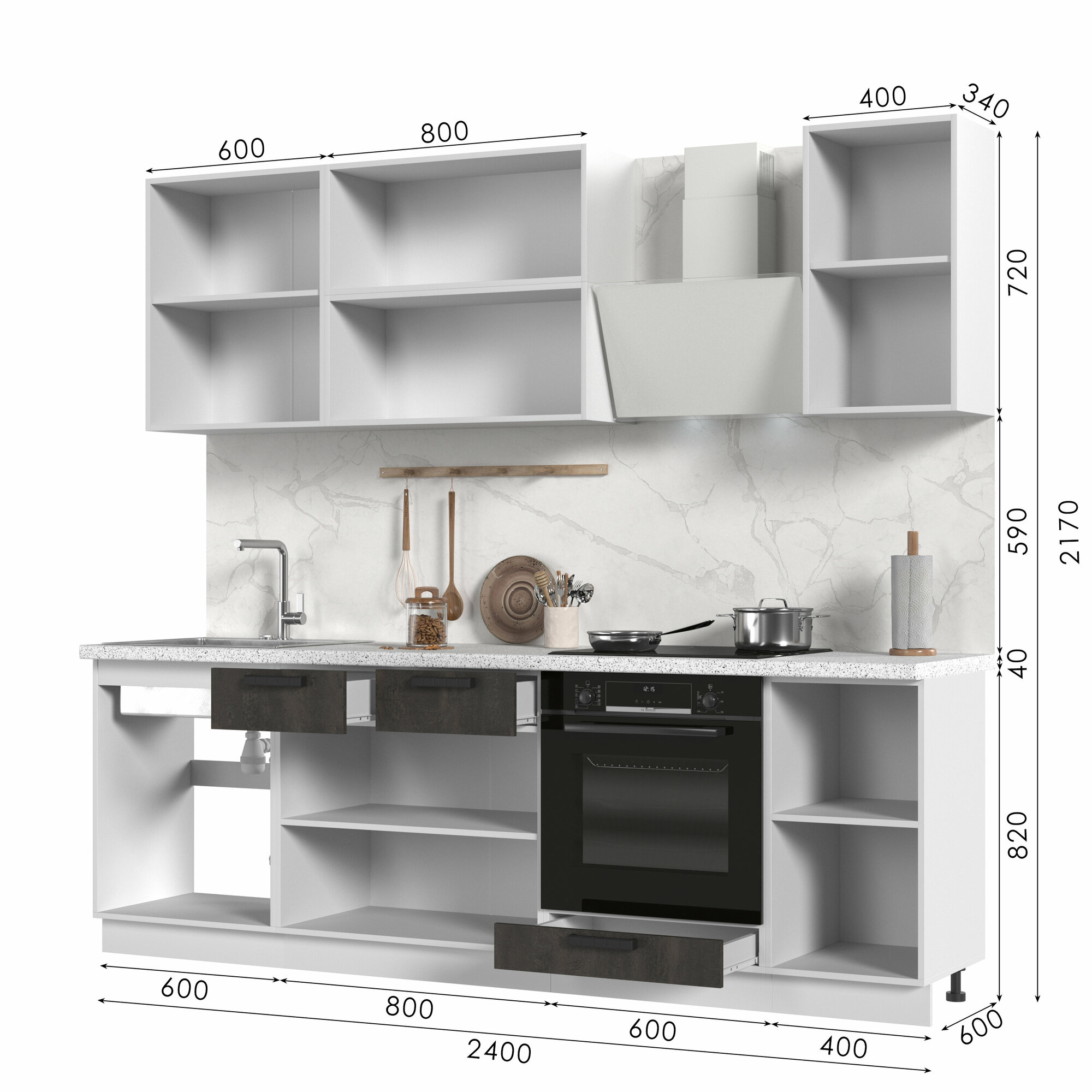 Кухонный гарнитур, без столешницы, Кухня Пасаденна 240см Белый / Угольный камень: сравнение цен, характеристики, фото, актуальное наличие и цены.
