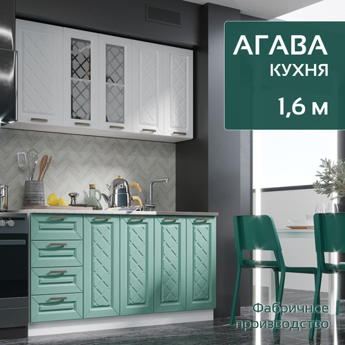 Кухонный гарнитур длиной 160 см, цвет корпуса Белый, цвет фасадов Акация белая/Мята: сравнение цен, характеристики, фото, актуальное наличие и цены.