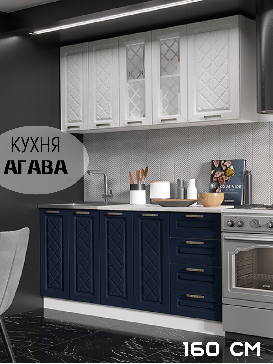 Купить Кухня готовая Агава, гарнитур длина 160 см, цвет Акация белая/Сапфир с доставкой по всей России. Кухня готовая Агава, гарнитур длина 160 см, цвет Акация белая/Сапфир: сравнение цен, характеристики, фото, актуальное наличие и цены.