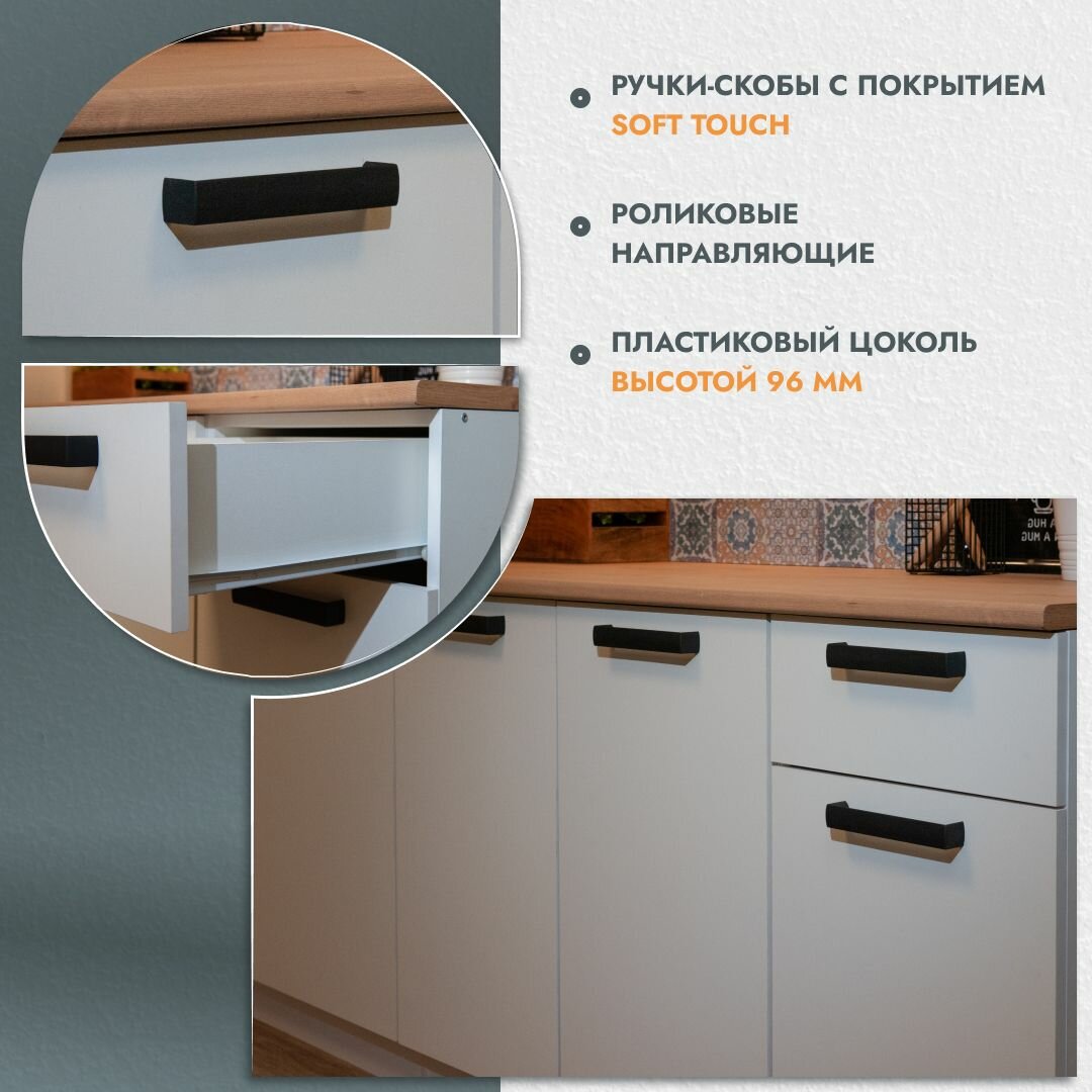 Кухонный гарнитур Ника Нео - это функциональный готовый комплект модулей, который подойдет для небольшой кухни в стиле сканди, лофт или эко-минимализм. Гарнитур выполнен в белом цвете, который создает спокойную и гармоничную атмосферу, зрительно увеличивая пространство.