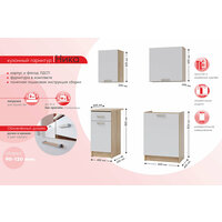 шкаф навесной 60 см, шкаф навесной 40 см (1 полка), тумба напольная 60 см, тумба напольная 40 см с выдвижным ящиком (1 полка), столешница (40 см, толщина 26 мм), цоколь