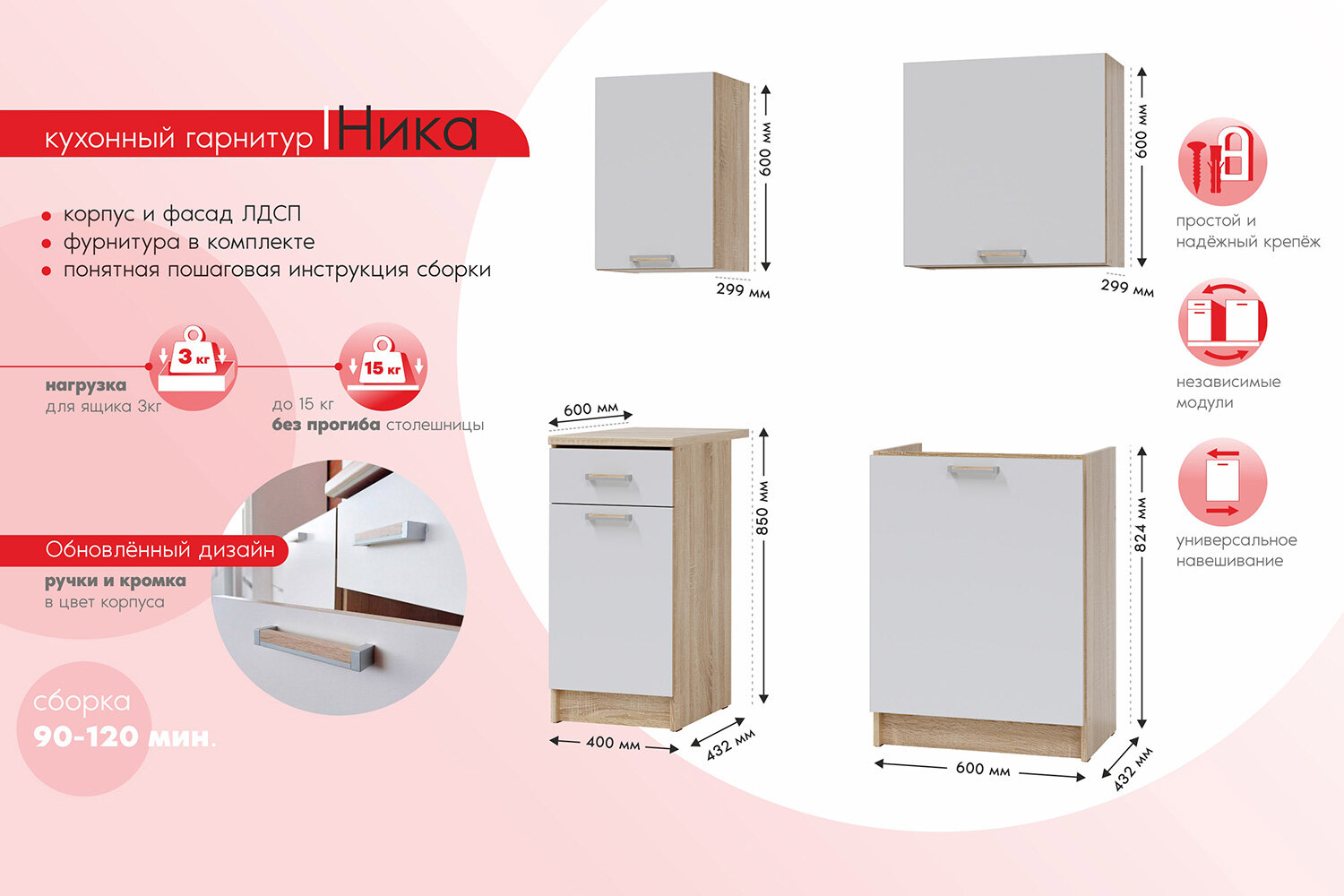 Купить Кухонный гарнитур Hoff Ника, 100x208x60 см, цвет дуб сонома, белый с доставкой по всей России. Кухонный гарнитур Hoff Ника, 100x208x60 см, цвет дуб сонома, белый: сравнение цен, характеристики, фото, актуальное наличие и цены.
