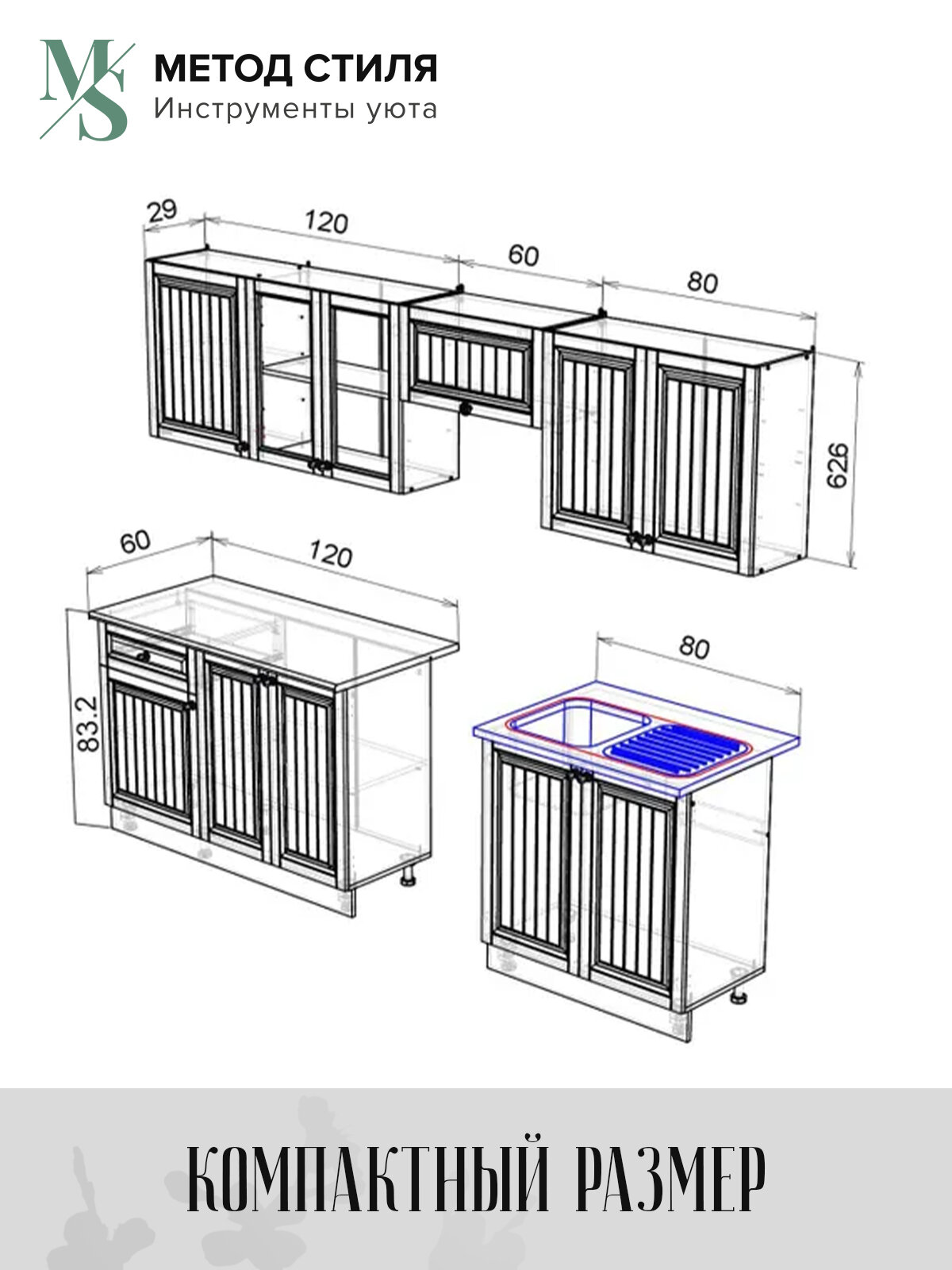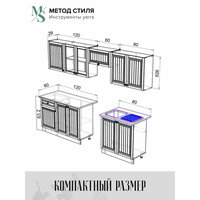 Обратите внимание, стол под мойку не комплектуется столешницей. Техника, мойка, сушилка и стеновая панель в комплект не входят. У гарнитура имеются зазоры для дополнительных коммуникаций. Высота модуля под мойку указана без учёта столешницы. В комплекте имеется вся необходимая фурнитура и инструкция по сборке изделия.