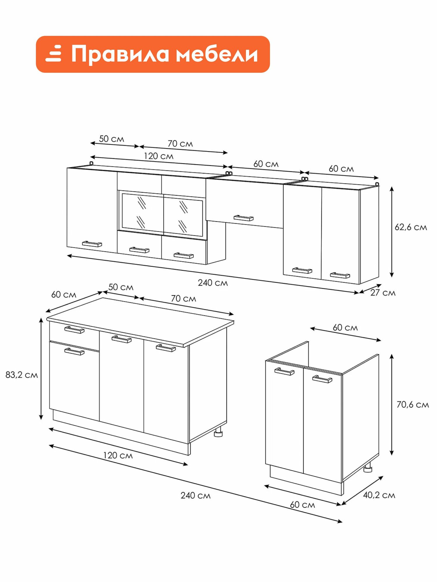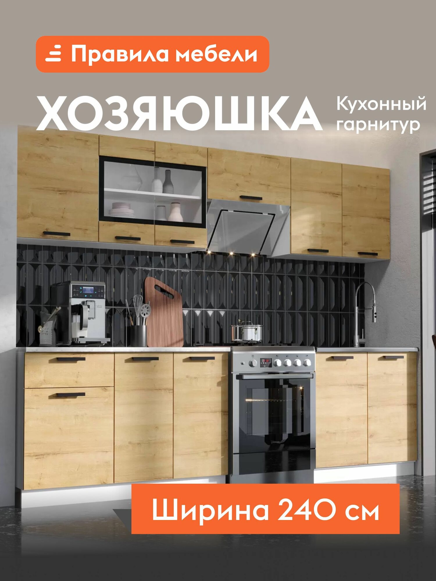 Кухонный гарнитур Хозяюшка 2.4 м, мебель для дома и кухни, Дуб Вотан / столешница Калаката: сравнение цен, характеристики, фото, актуальное наличие и цены.