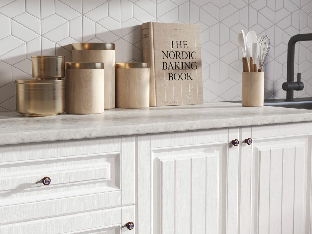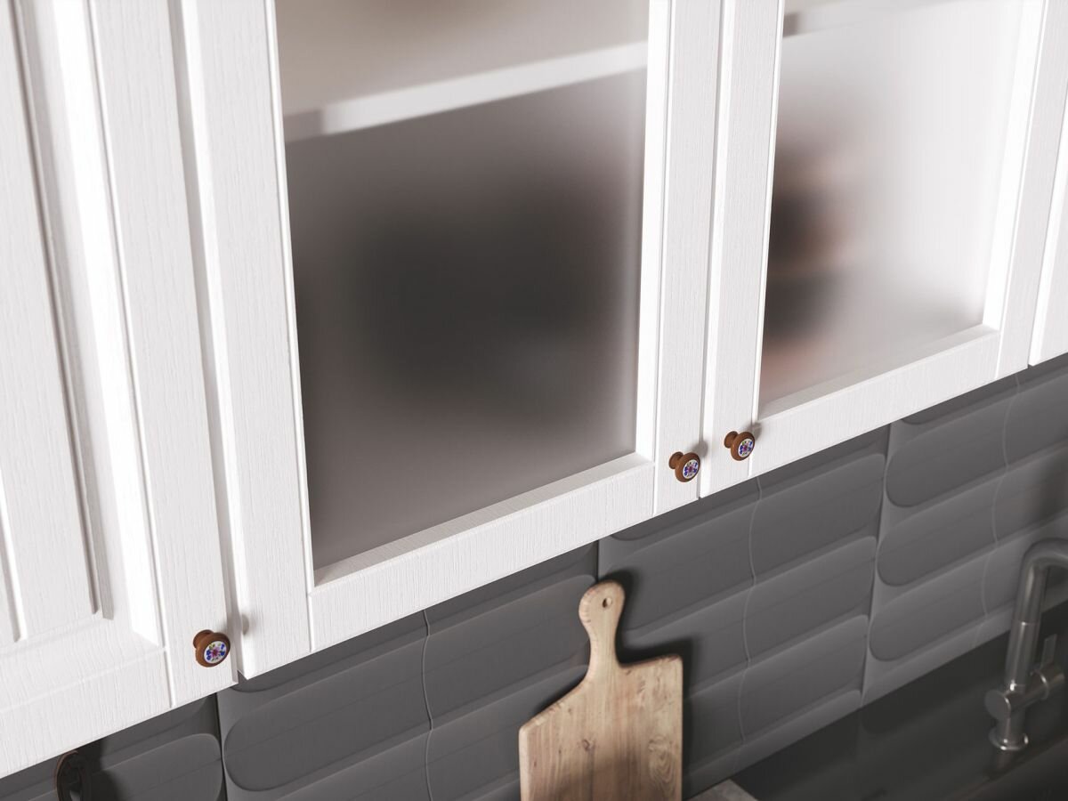 Столешница: Цельная (1000мм), Толщина 26 мм; Верх (ВхШхГ): Шкаф 1 дверь + 2 двери со стеклом: 626 х 1000 х 290 мм. Шкаф 1 дверь: 626 х 500 х 290 мм. Низ (ВхШхГ): Стол 3 двери и 1 ящик: 840 х 1000 х 420 мм. Стол под мойку: 840 х 500 х 420 мм.