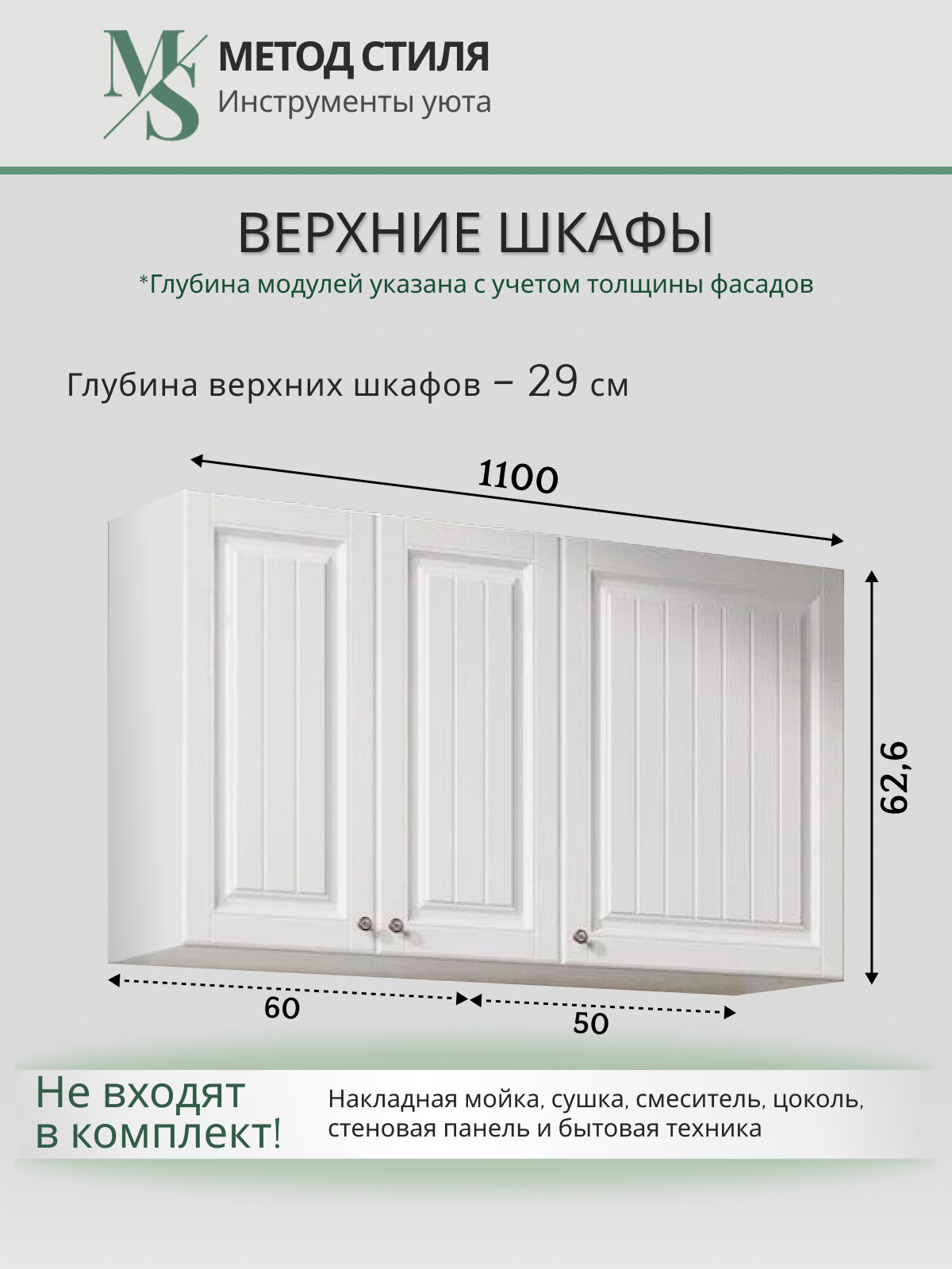 Глубина верхних и нижних шкафов указана с учетом фасада.