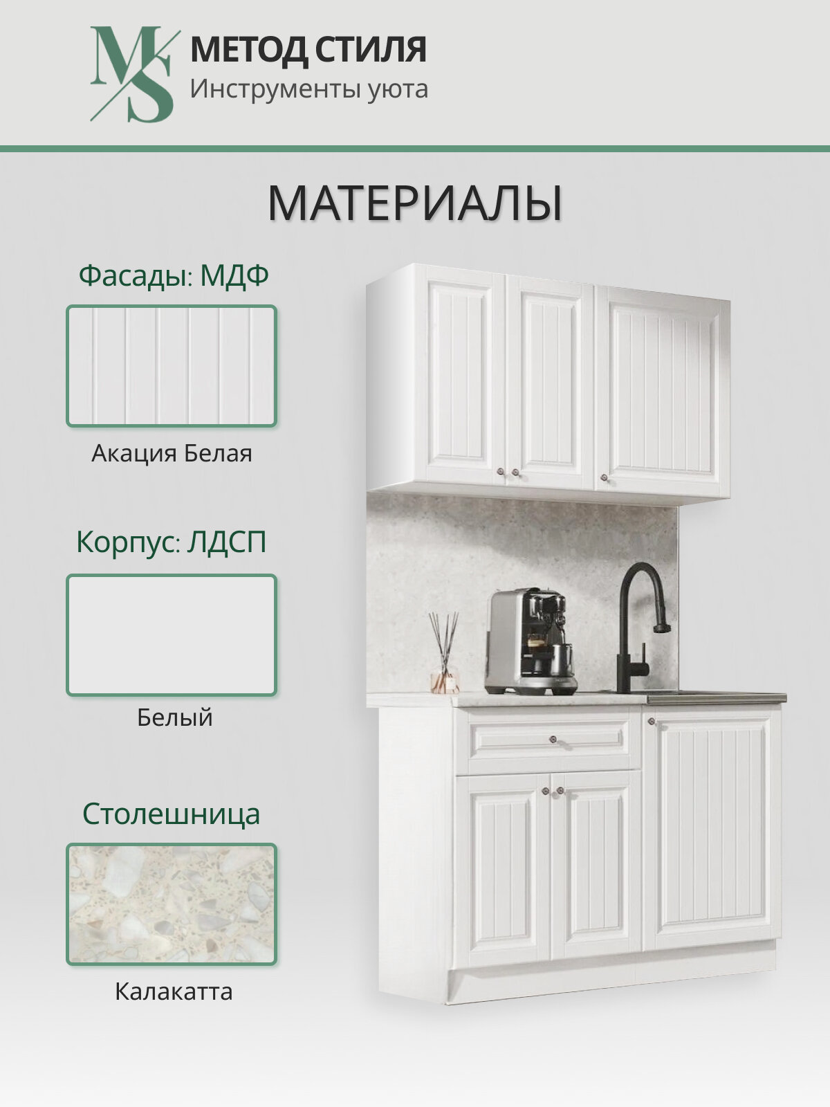 В комплект входит инструкция по сборке, что делает процесс установки быстрым и доступным даже для новичков. Модульный подход к созданию кухни позволяет комбинировать элементы под ваши нужды и предпочтения. Вы можете выбрать различные комбинации фасадов МДФ, чтобы добиться идеального сочетания цветов и текстур.