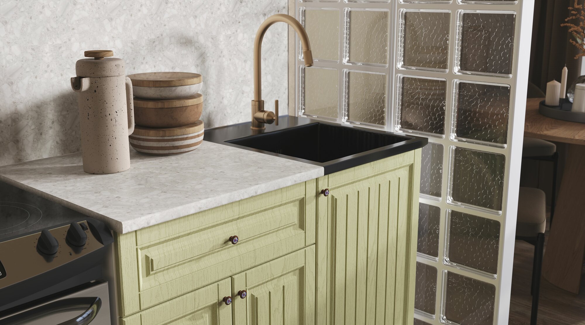 Купить Кухонный гарнитур Хозяюшка МДФ 1,1м Фисташка с доставкой по всей России. Кухонный гарнитур Хозяюшка МДФ 1,1м Фисташка: сравнение цен, характеристики, фото, актуальное наличие и цены.