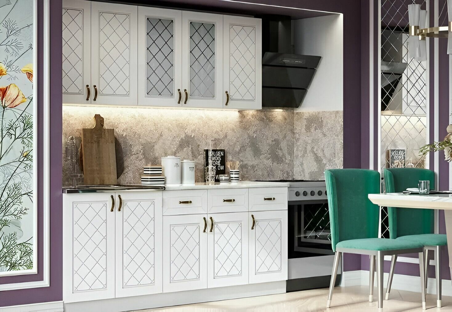 Кухонный гарнитур прямой Нонтон Ирина, белый / белый матовый, 200 см