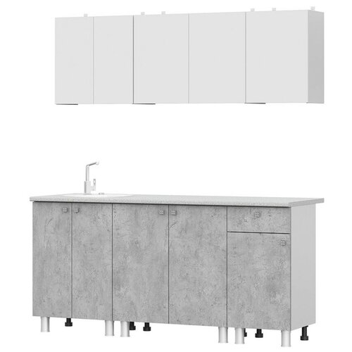 Кухонный гарнитур «КГ — 1(2000)» Белый / Белый / Цемент светлый / Антарес